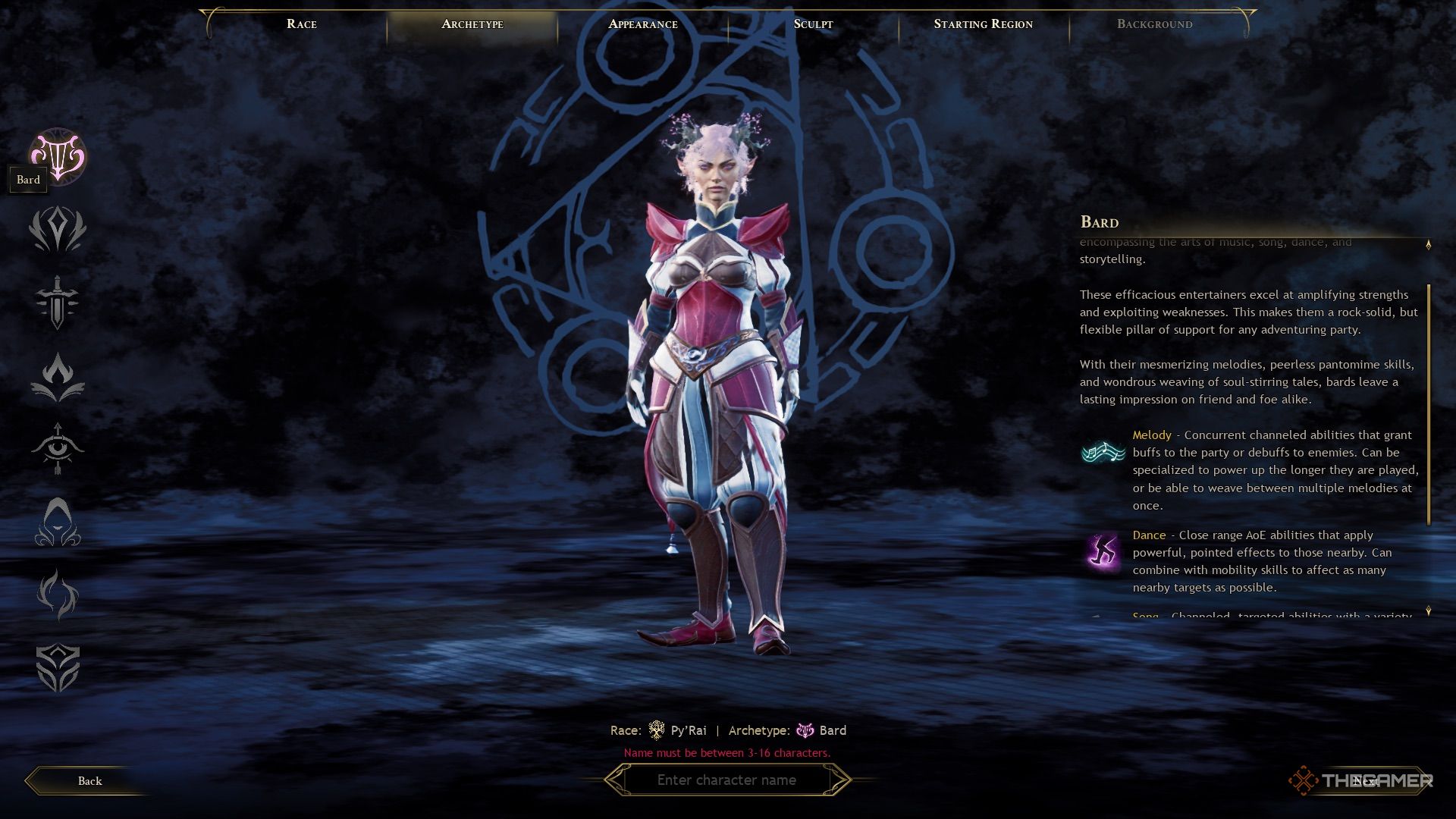 Когда вы начинаете игру, вы сначала выбираете тип главного героя, называемый архетипом. Доступно восемь различных классов, и каждый из них разработан для определенного стиля игры.