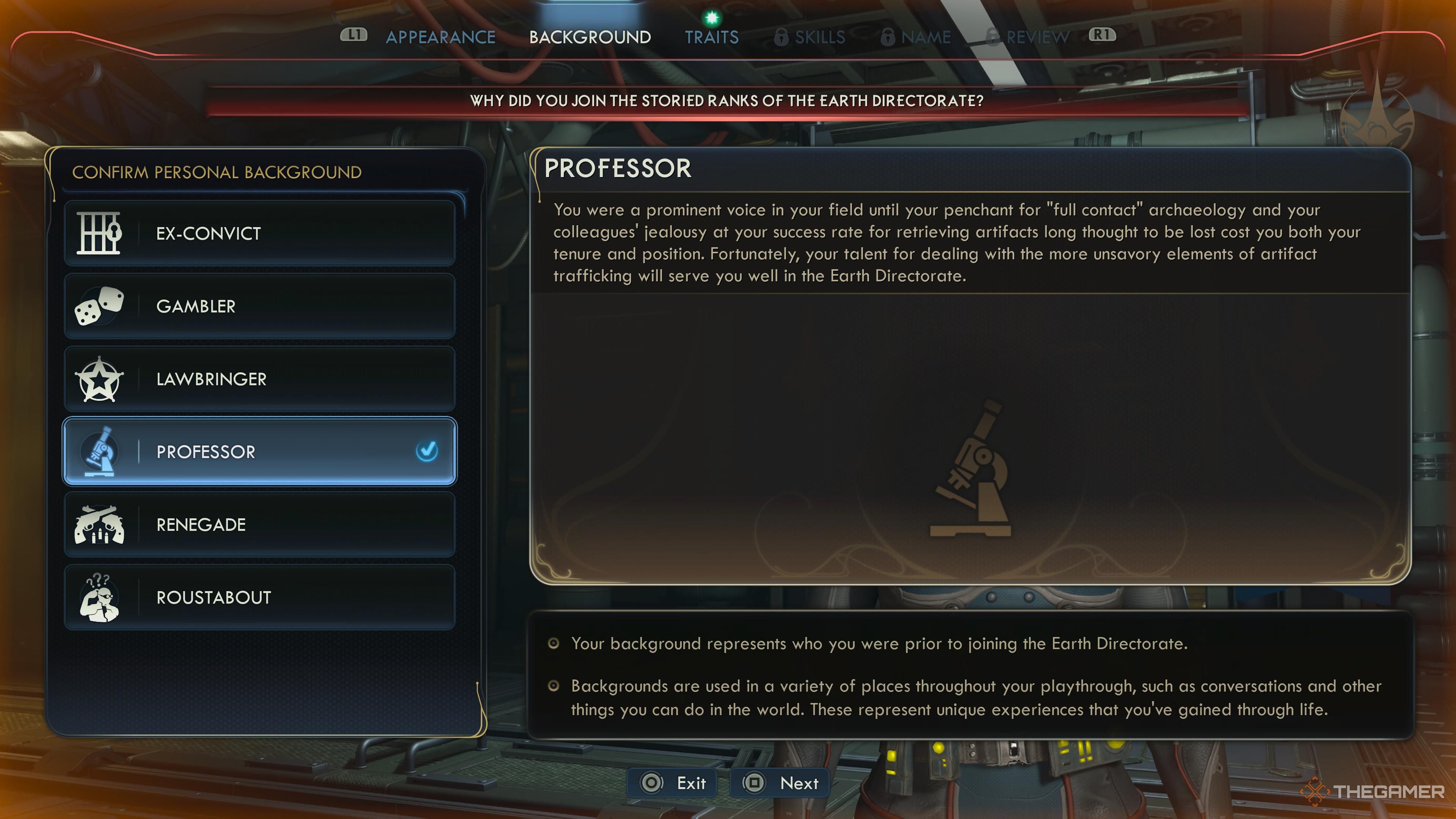 В начале вы можете выбрать один из шести различных предысторий. Просто имейте в виду, что после выбора он становится постоянным. Вам не обязательно полностью отыгрывать роль, связанную с вашей предысторией, но она может дать вам некоторые преимущества в игре.