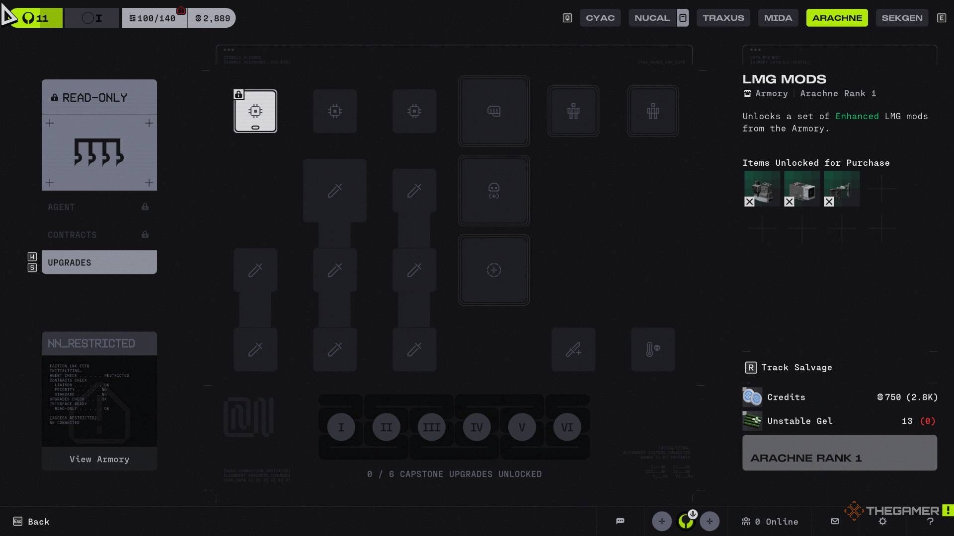 Как и фракция Траксус, Arachne фокусируется на боевых действиях с использованием оружия. Они предлагают доступ к лёгким пулемётам, дробовикам и рельсотрону, а также модификации для каждого из этих типов оружия. Я всё ещё выясняю, какое оружие наиболее эффективно, но дробовик кажется особенно мощным на близком расстоянии.