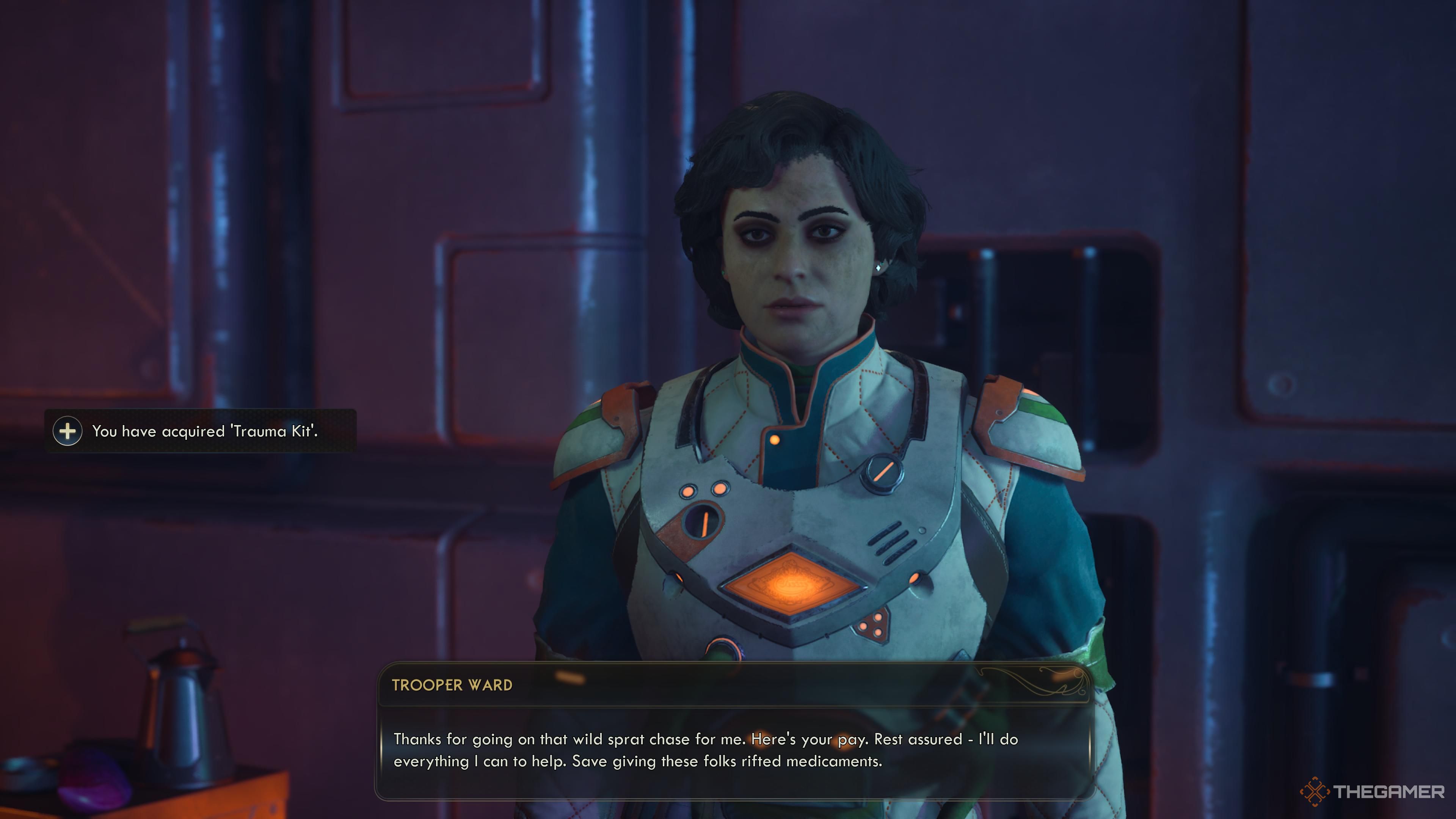 Вы также встретите Пеорию Квебекер, которая находится в башне напротив Зимней Хватки. Вы можете получить Загадочный Аудиокартридж от неё несколькими способами — поговорив с ней, осмотрев ящик Crabble у основания башни или даже обворовав её. Этот картридж раскрывает, что «Crabble» мясо, которое она доставляет Протекторату в Архиве, на самом деле не Crabble, и эта информация будет ценной, когда вы внедритесь в их ряды.