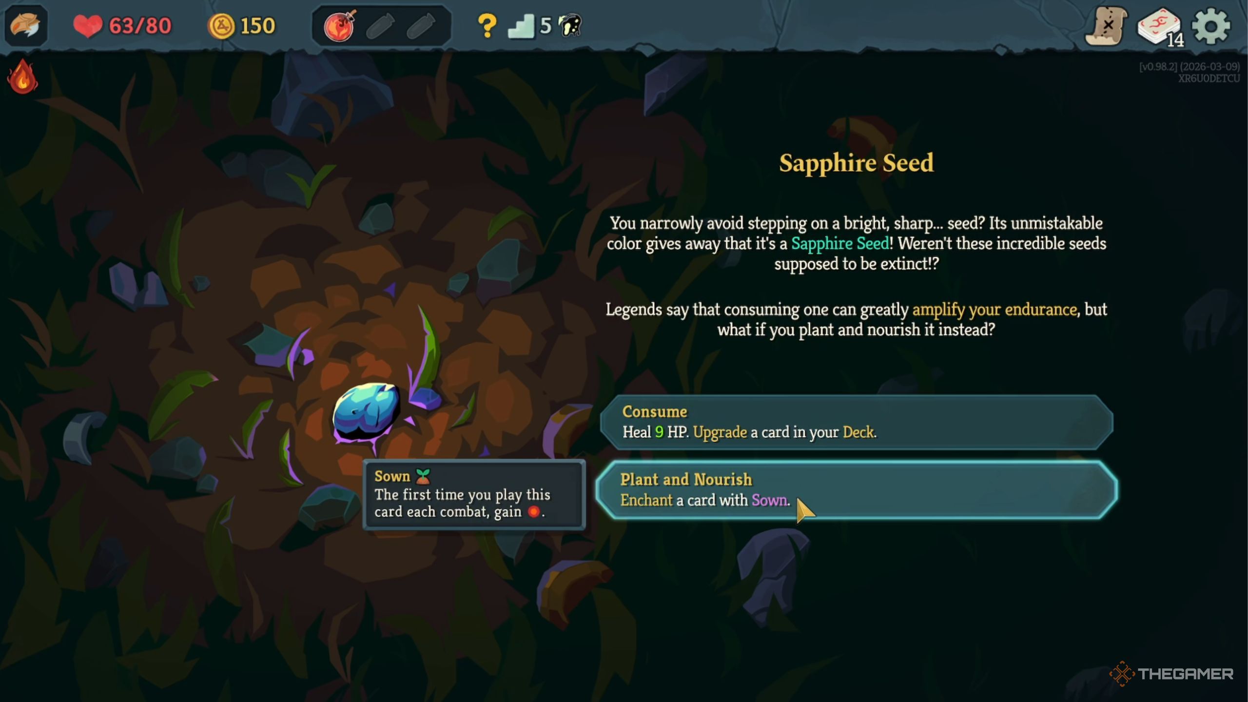 | Sapphire Seed | Восстановите 9 HP и улучшите карту