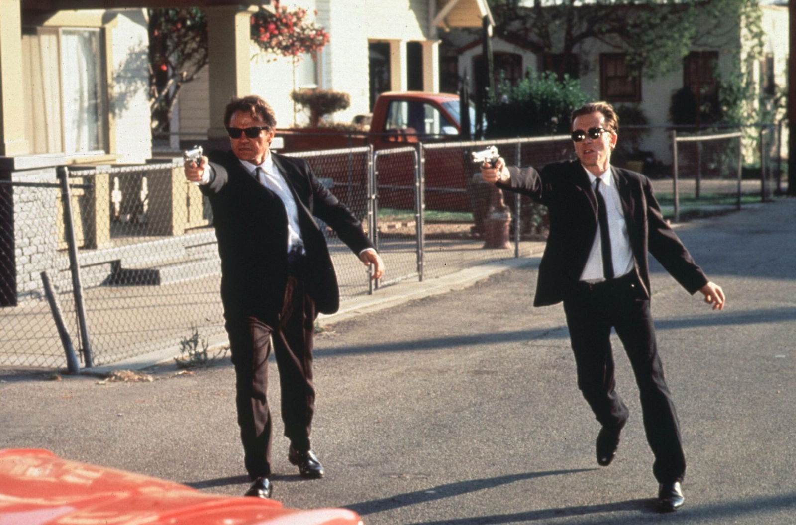 К сожалению, водитель машины для побега оказался не очень полезным. Его застрелили в голову, и он вскоре после начала движения разбился, оставив мистера Уайта и мистера Оранжа обороняться самостоятельно в хаотичной уличной драке.