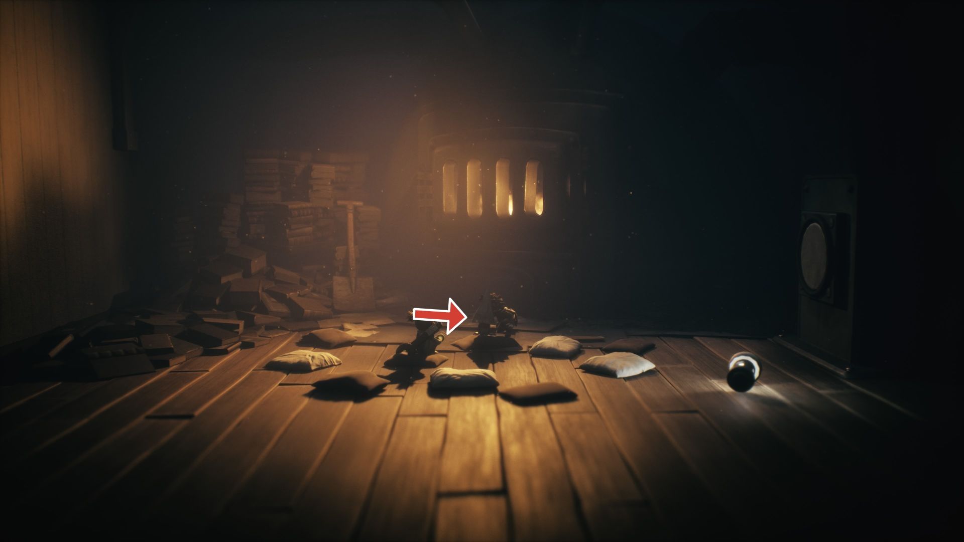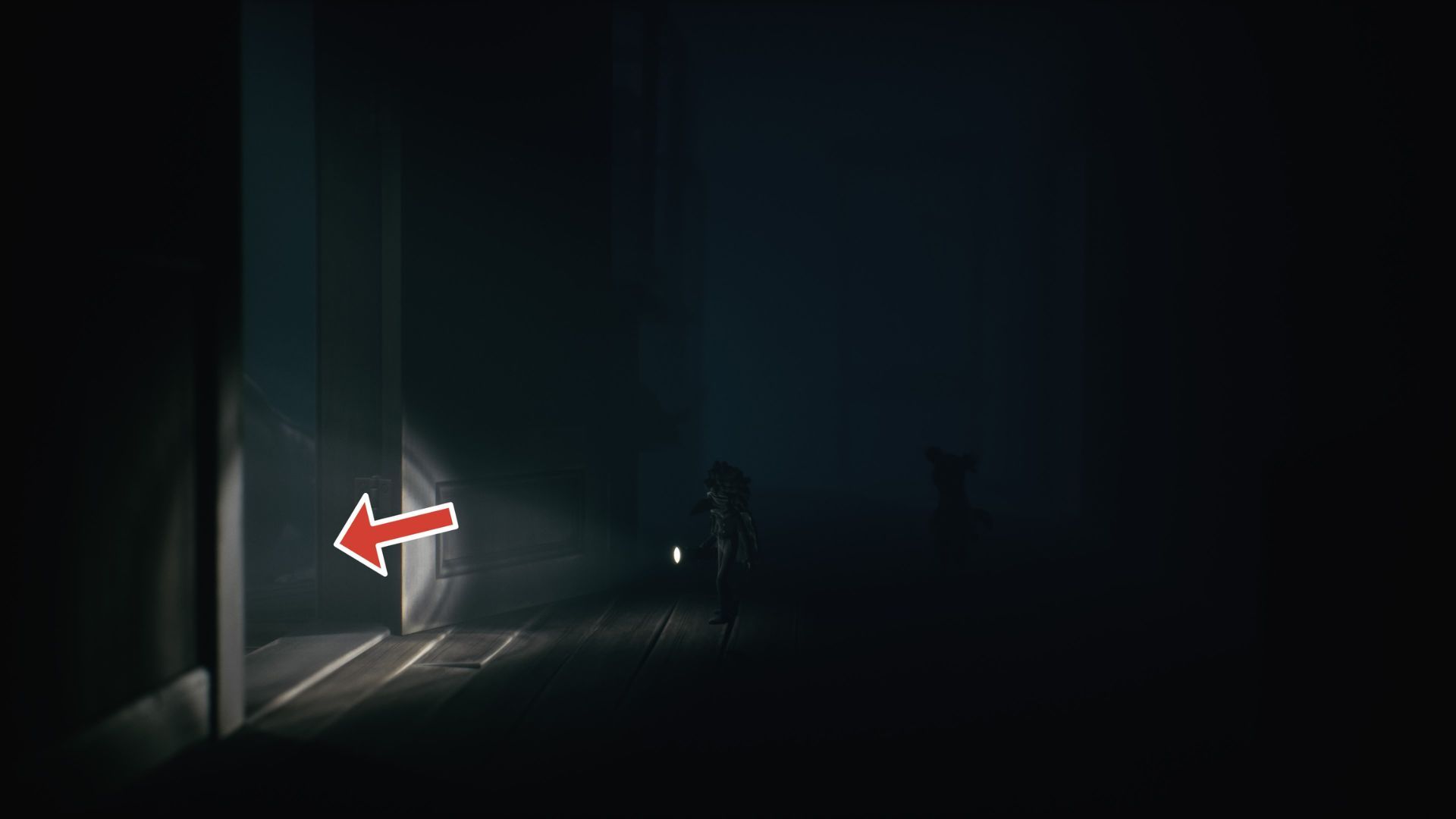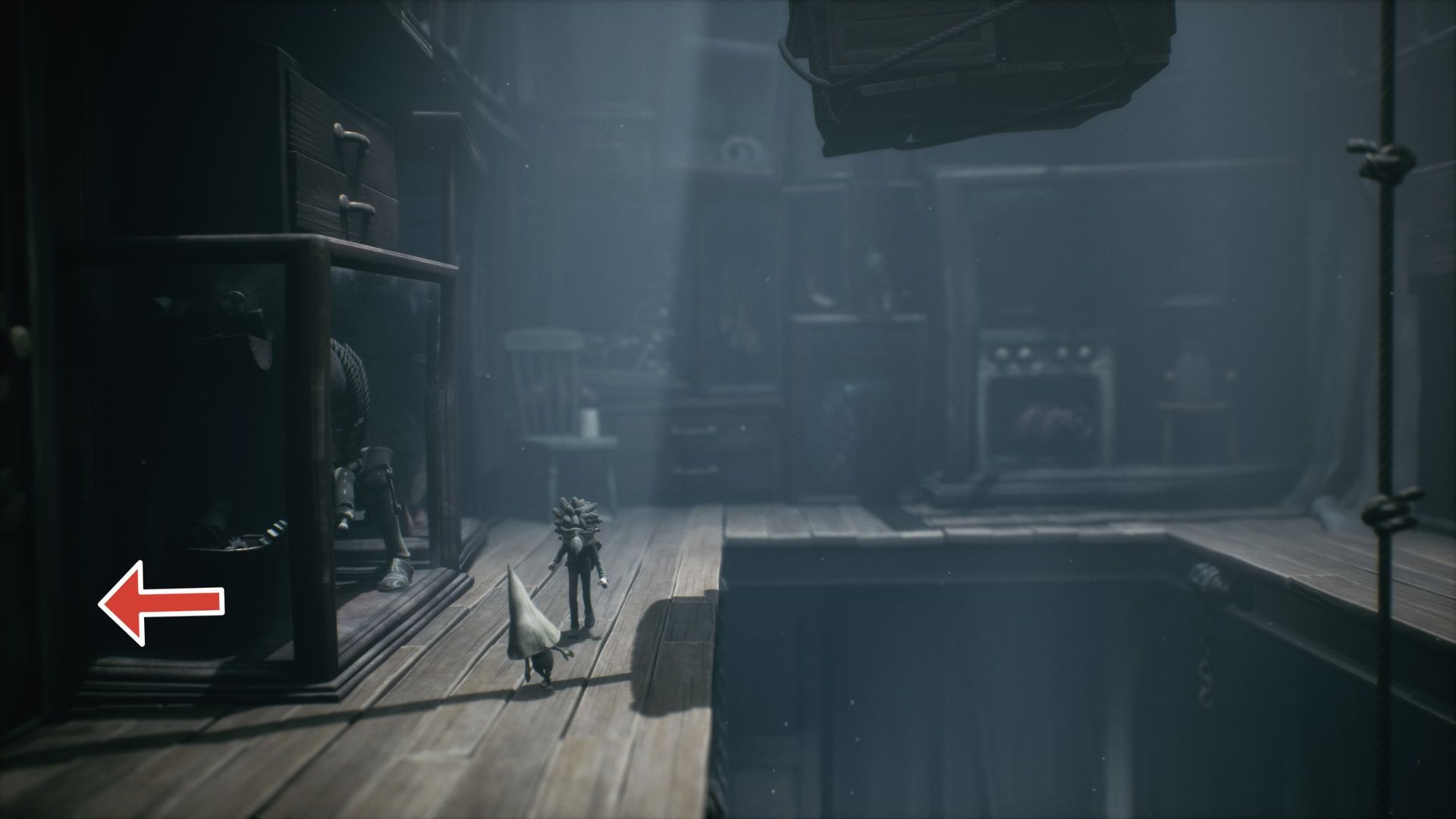 Когда вы доберётесь до верхнего уровня, обойдите платформу на восточную сторону, чтобы найти комнату, в которой находится кукла. Подберите куклу, затем откройте шкаф справа – вы обнаружите Нома внутри. Ном попытается сбежать, поэтому обязательно преследуйте его.