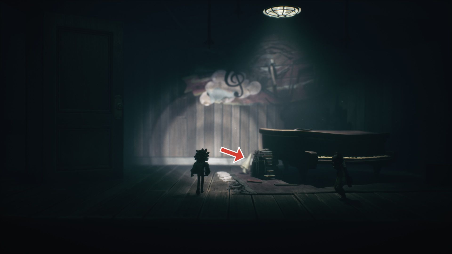 Окей, так что, выполнив это, из скрытой комнаты выскочит маленький Ном и юркнет за пианино. Вам нужно подойти к нему и подобрать его – так вы его соберете!