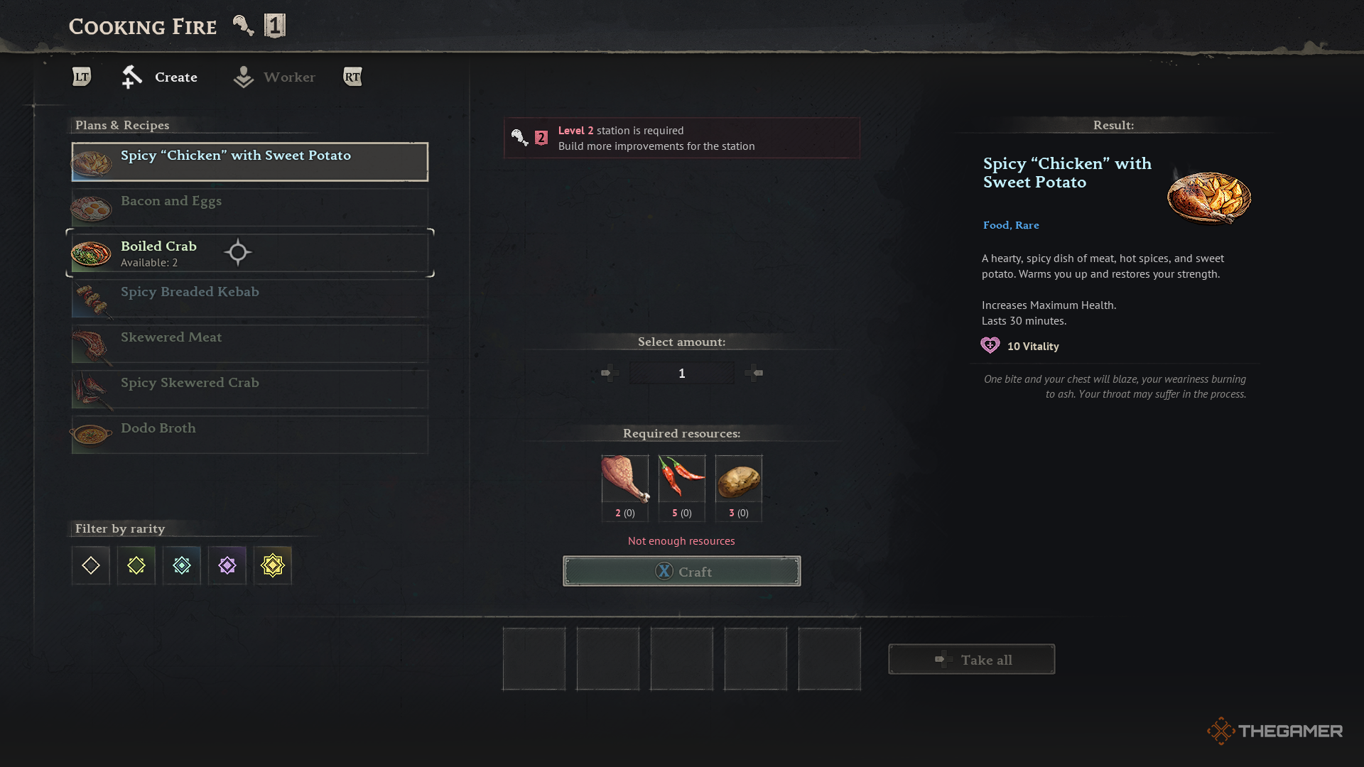 Употребление хорошей еды может улучшить ваше здоровье и боевые способности. Еда 1-го уровня дает небольшое усиление на 15 минут, увеличивая ваши характеристики на 5. Еда 2-го уровня лучше, длится 30 минут и увеличивает характеристики на 10. Еда высших уровней, 3 и 4, обеспечивает еще большее улучшение, добавляя 20 к вашим характеристикам.