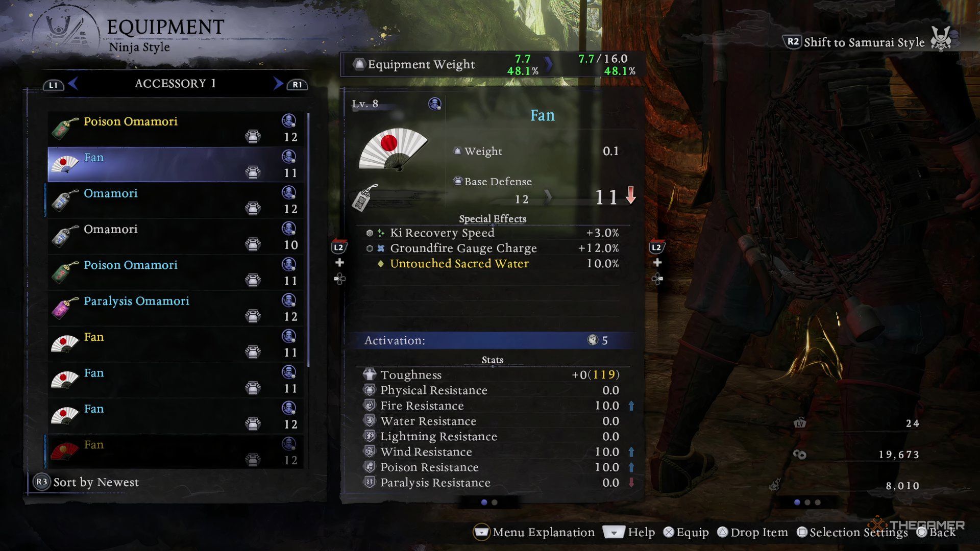 Сердце также обеспечивает важную поддержку. Дополнительная Ки и более быстрое восстановление Ки, которые оно предлагает, значительно упрощают выполнение более длинных комбо, особенно при связывании быстрых атак в Deadly Mark или Whirlwind перед отходом от противника.