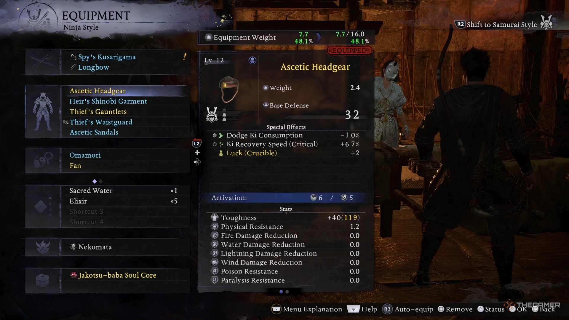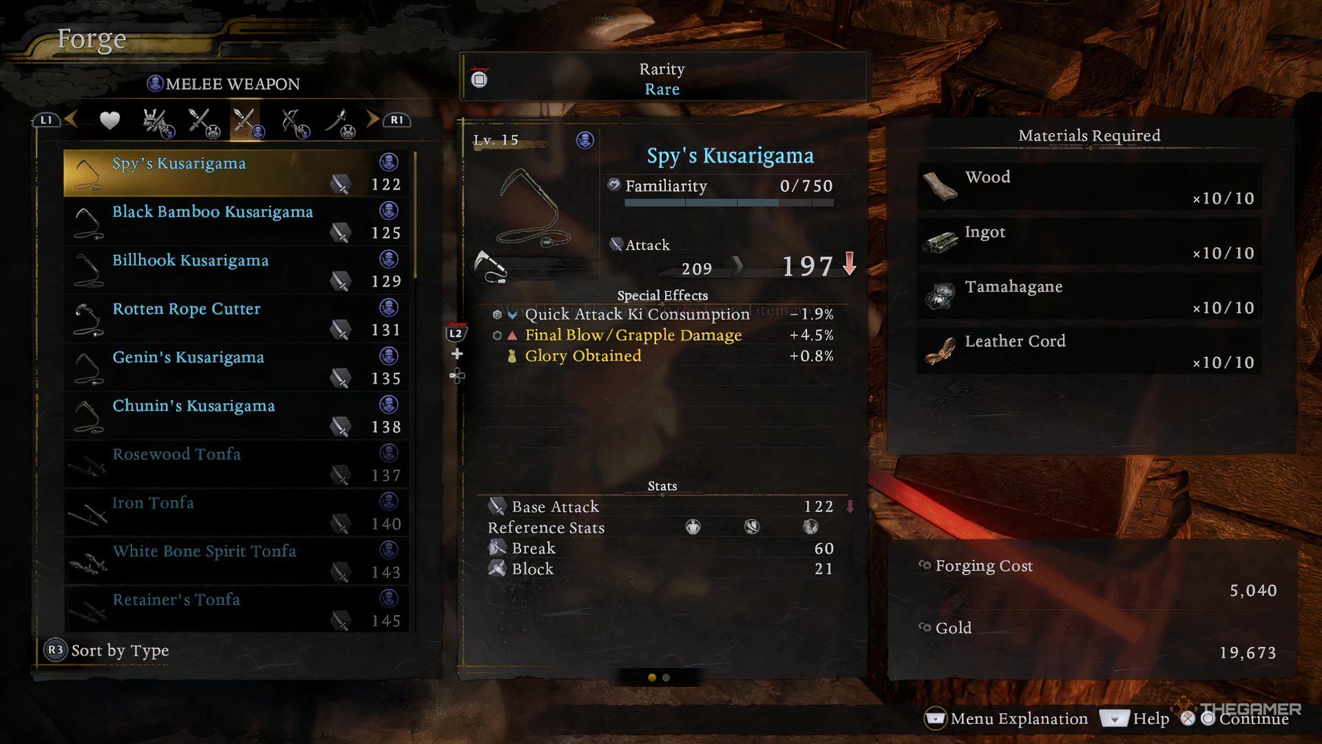 Если у вас возникли трудности с поиском Кусаригамы Шпиона, любое похожее оружие, которое снижает потребление Ки, увеличивает урон Ки в ближнем бою или добавляет Дренирование Жизни к Быстрым Атакам, будет работать хорошо. Однако Кусаригаму Шпиона на самом деле довольно легко получить – просто выкуйте её у Кузнеца в Маске Лисы в Вечном Разломе.
