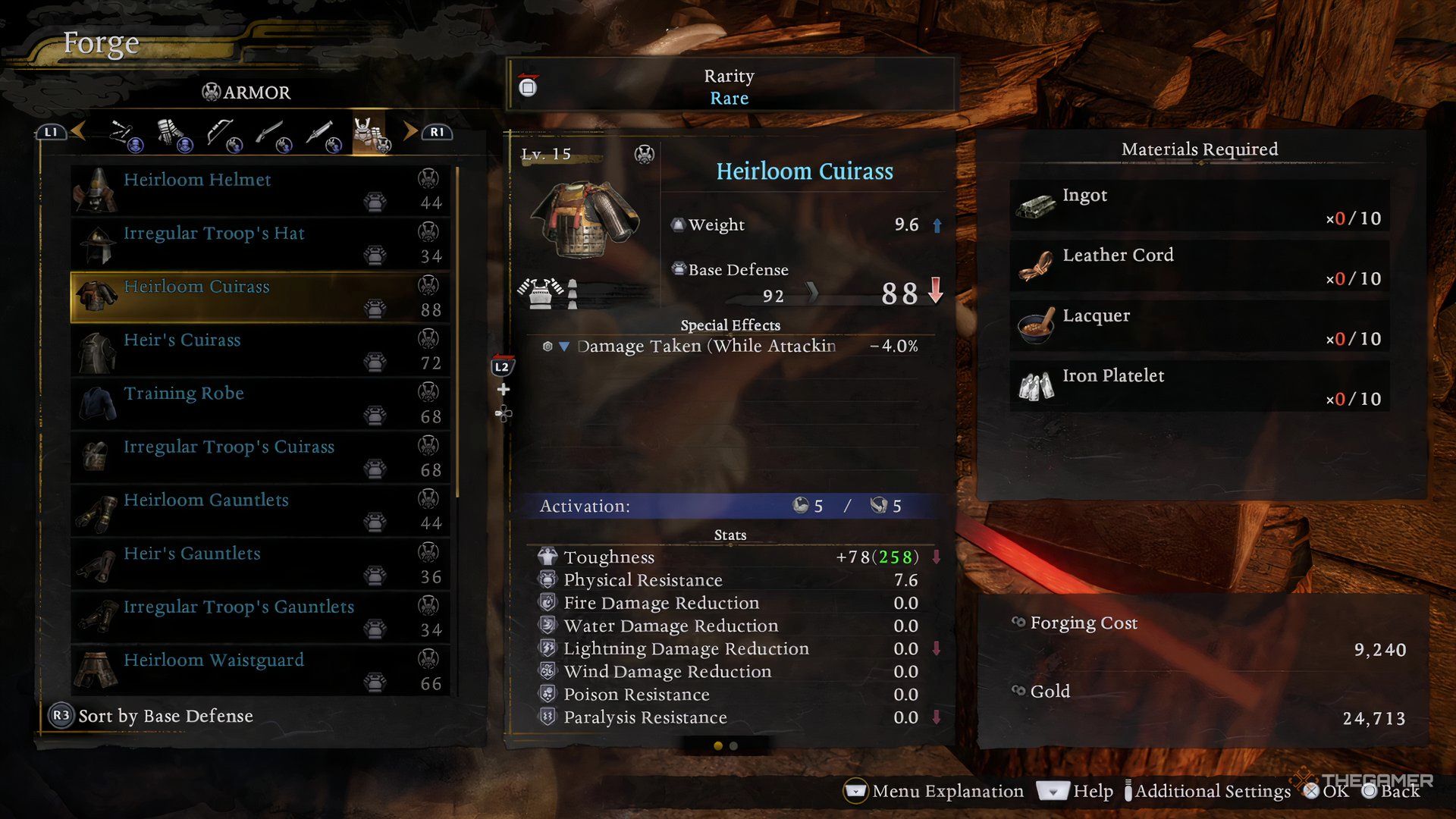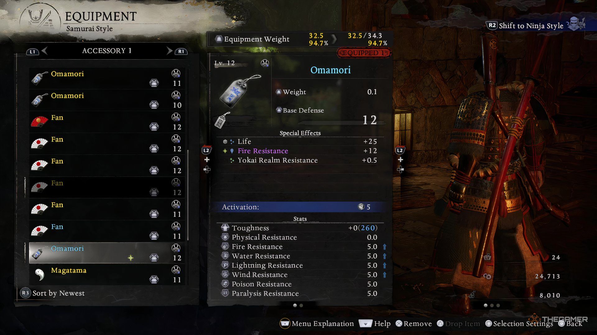 Поскольку эта сборка фокусируется на мощных атаках, вам понадобится броня, которая подчеркивает как Защиту, так и Выносливость, чтобы максимизировать вашу выживаемость. Тяжёлая самурайская броня особенно полезна, поскольку она помогает вам продолжать атаковать, даже когда враги пытаются вас прервать, что отлично подходит при столкновении с сильными Ёкай.