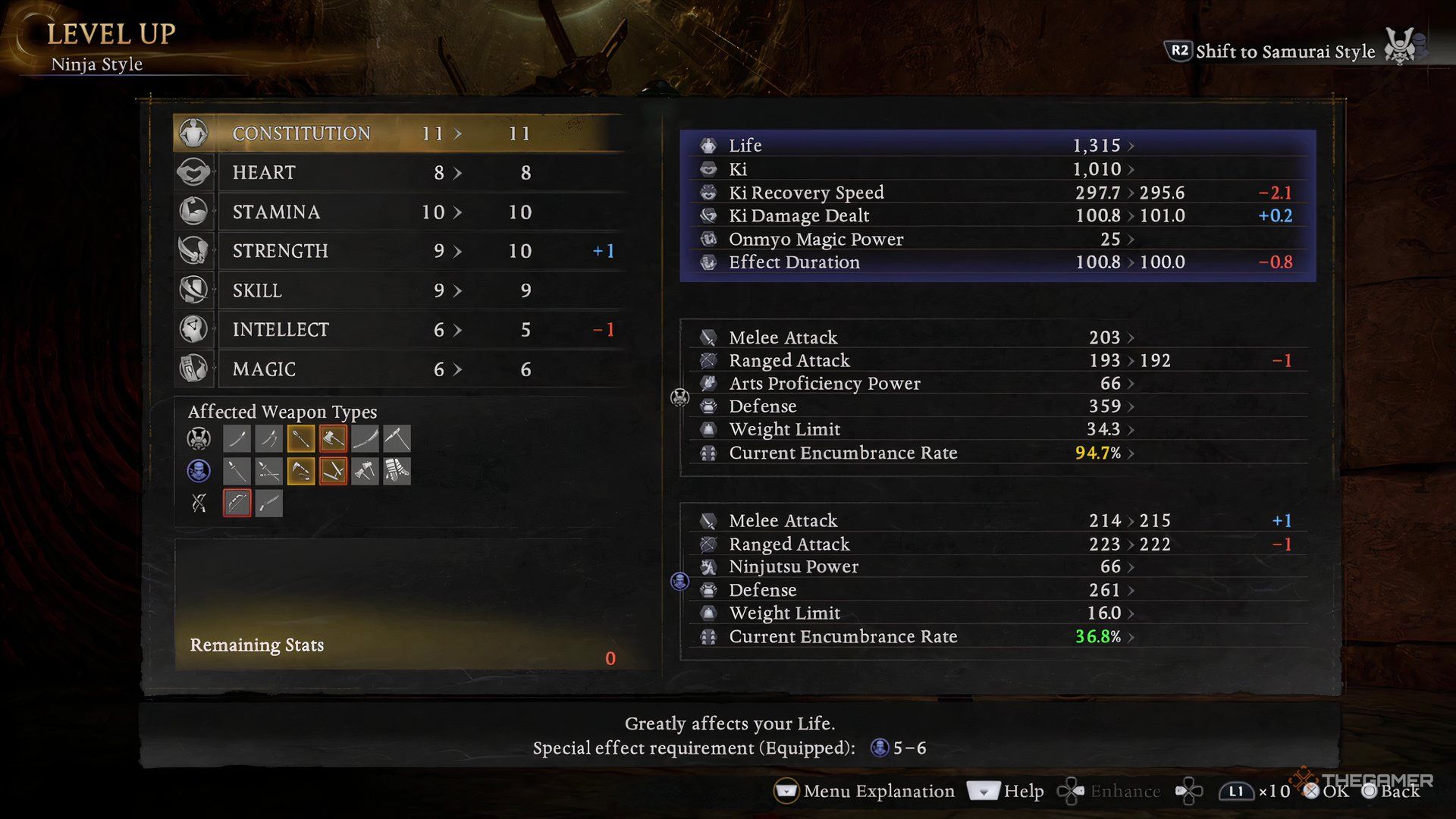 Сердце крайне важно для этой сборки, поскольку меч Одачи расходует Ки быстрее, чем другое оружие самурая. Увеличение вашего Ки и скорости его восстановления позволяет постоянно давить на врагов во время сражений, что означает, что вы можете атаковать последовательно, а не постоянно отступать для перезарядки, особенно если вы не вовремя используете Ки-импульс.