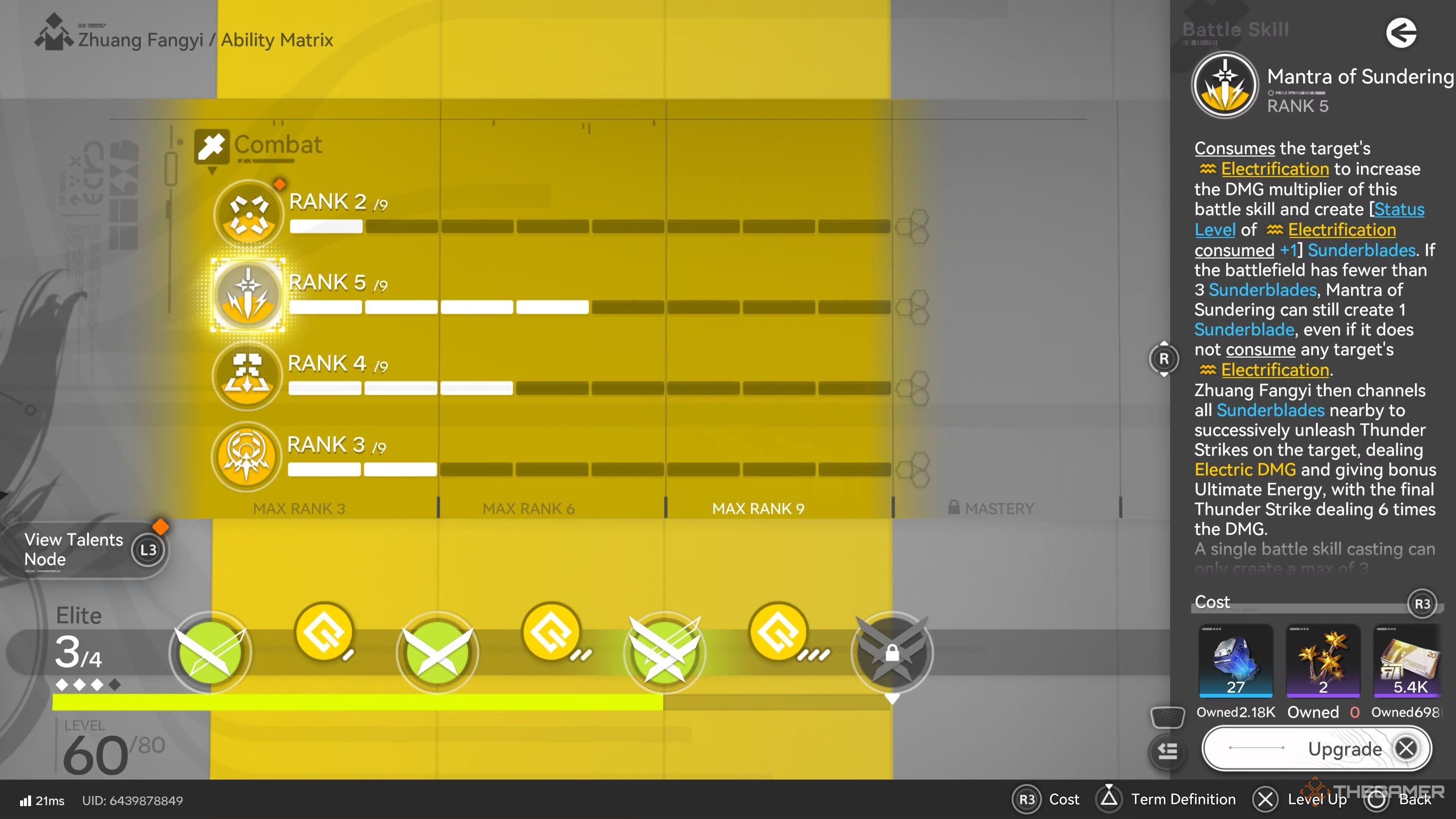 Самой эффективной способностью Чжуан Фанйи является её комбо-умение, которое становится особенно сильным при активации её ультимейта, позволяя ей быстро и мощно накладывать электрический эффект на врагов. Затем мы сосредоточились на самом ультимейте, поскольку он значительно усиливает все её атаки и значительно улучшает её характеристики во время использования. Как и в случае со многими другими персонажами, её стандартная базовая атака не была основным объектом внимания.