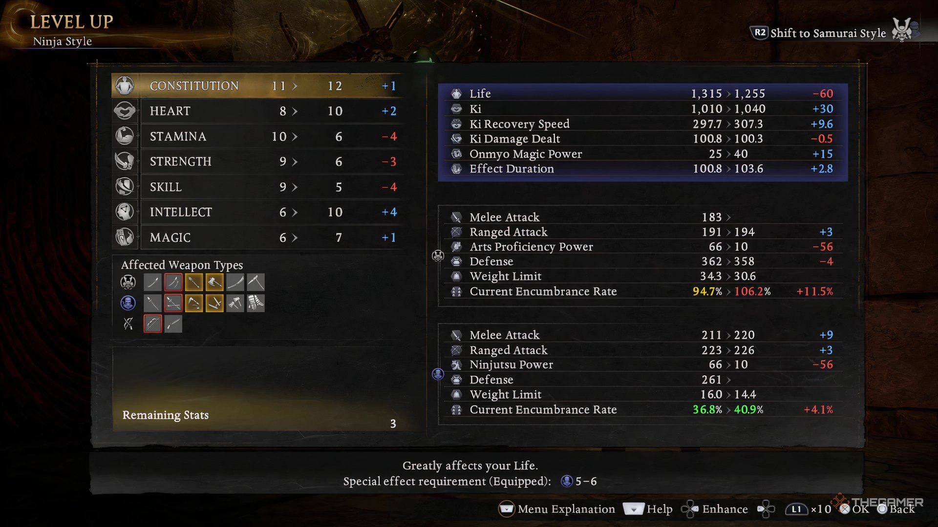 Чтобы получить максимальную отдачу от двойных ниндзя-мечей в Nioh 3, вам необходимо выстраивать длинные серии атак. Приоритет всего лишь четырём характеристикам – Сердце, Интеллект, Магия и Телосложение – сделает вашего персонажа сильным и всесторонне развитым, не жертвуя при этом эффективностью в других областях.