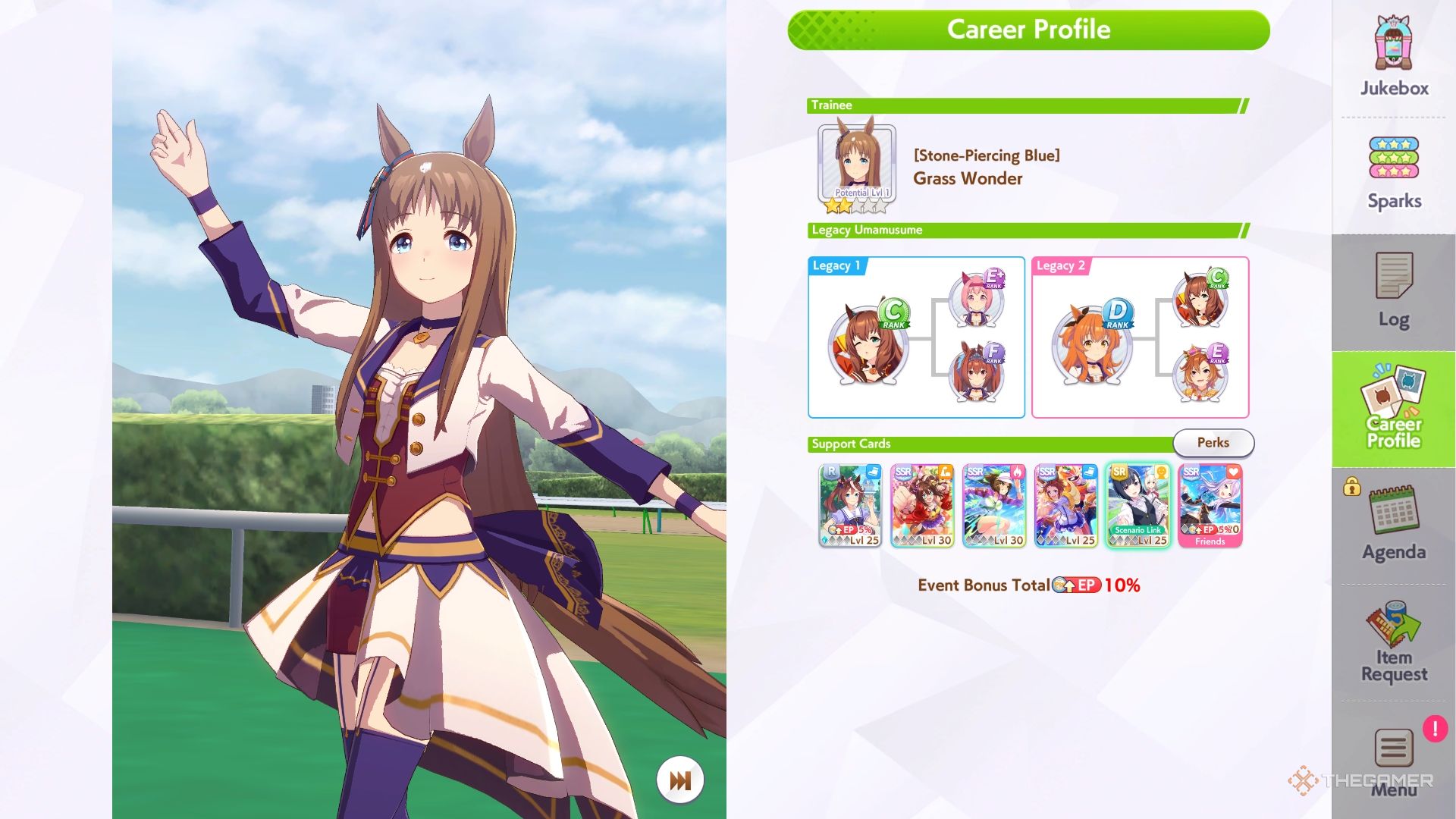 Второй унаследованный гонщик может улучшить выносливость Grass Wonder и также повысить её интеллект, создавая более сбалансированный набор характеристик. Возможно, потребуется несколько попыток, чтобы получить идеальных родителей-гонщиков, но усилия будут вознаграждены.