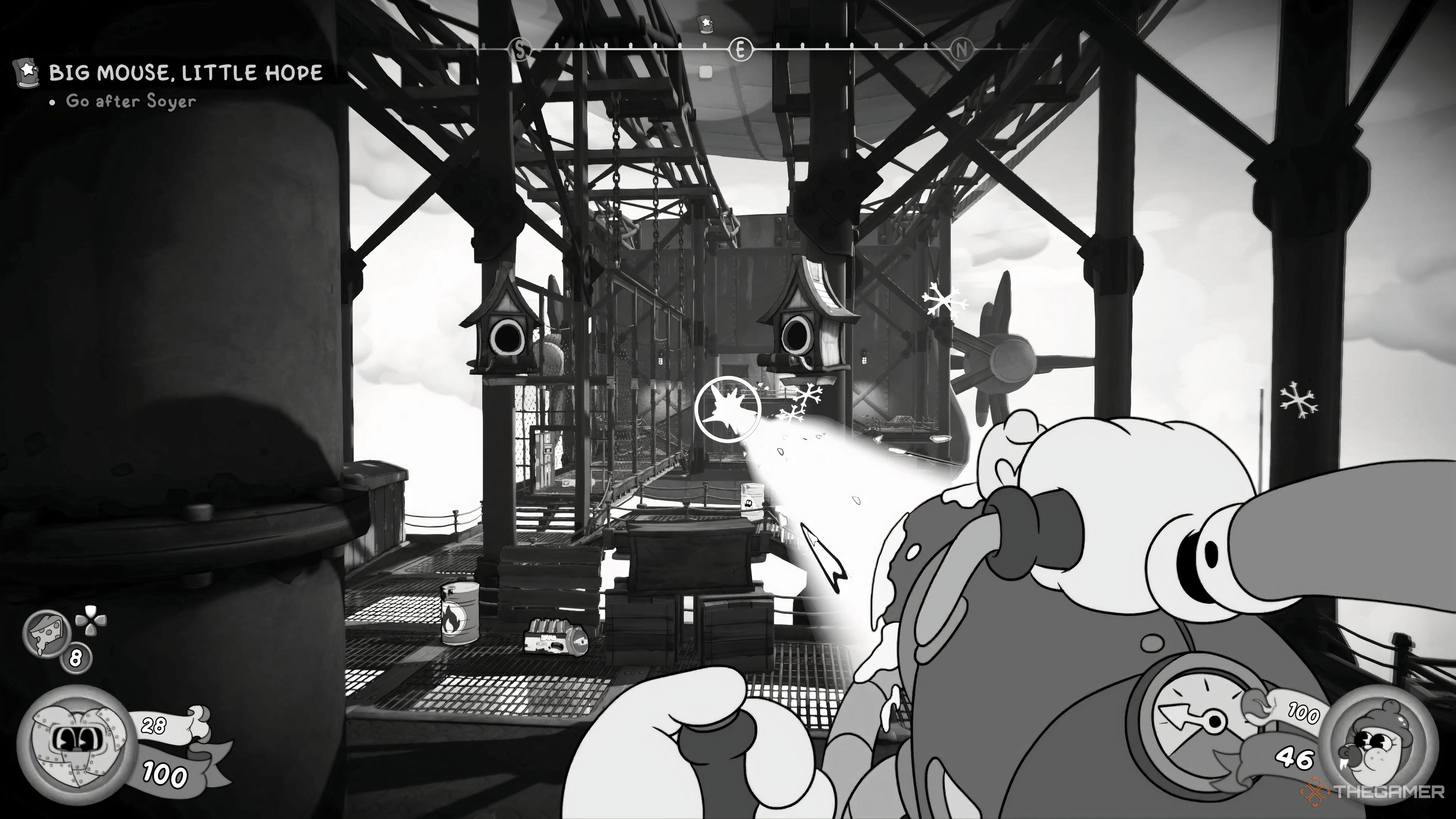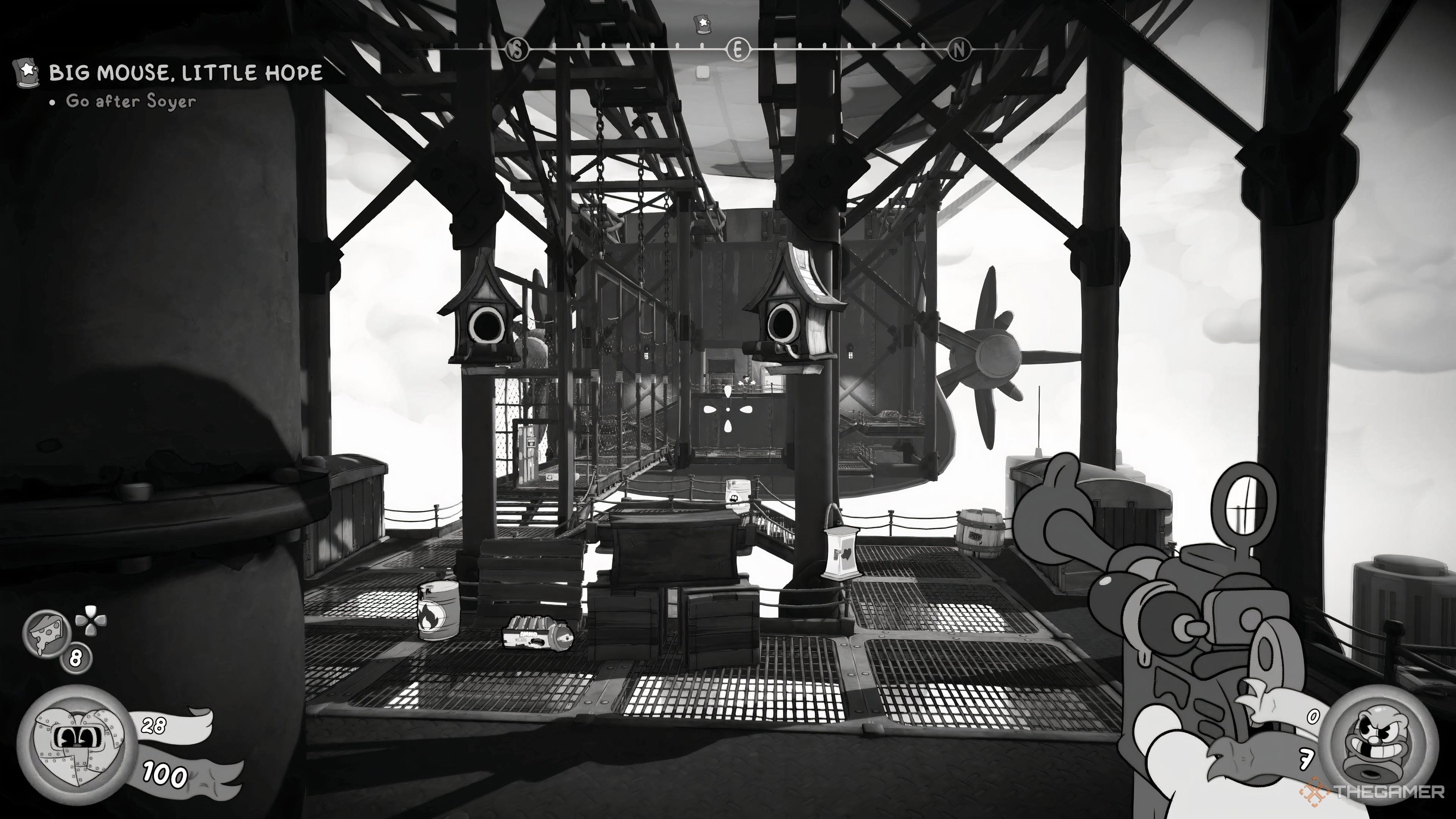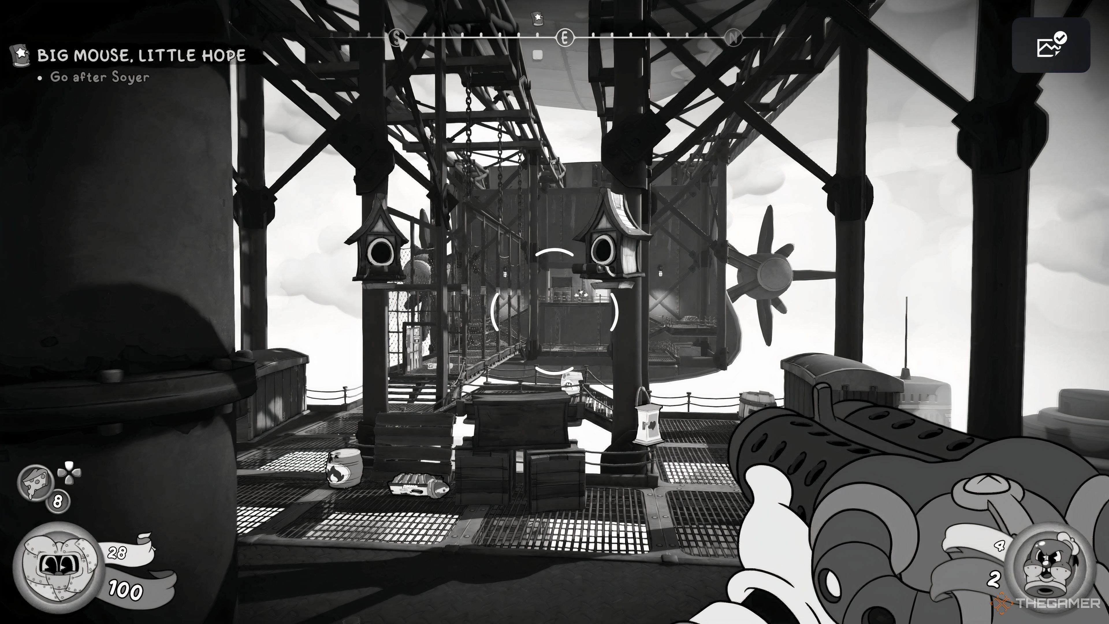 Как огромный поклонник Mouse: P.I. Hire, я много играл с этим оружием, и, честно говоря, есть пара моментов, которые меня раздражают. Немного разочаровывает, что его нельзя улучшить, но это не критично, потому что оно и так довольно мощное. Что действительно меня беспокоит, так это то, насколько оно громкое – даже когда ты им не пользуешься! Звуковое оформление в этой игре потрясающее, поэтому постоянно шумное оружие как-то диссонирует с общим впечатлением.
