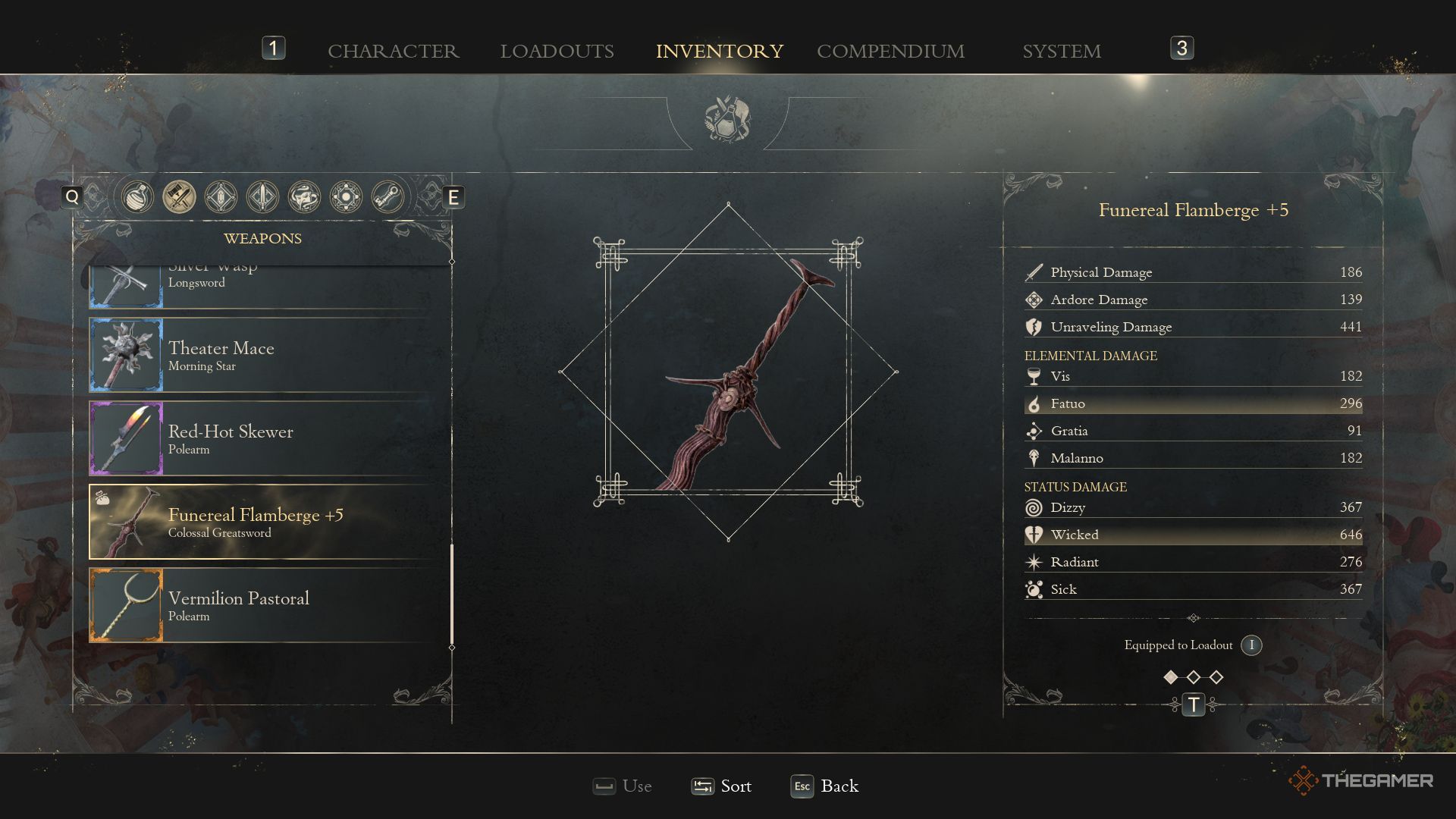 Этот предмет увеличивается со всеми характеристиками, но особенно усиливается со способностями Элементаля и Статуса. Используя его масштабирование и мощный статусный урон, вы можете легко вывести из строя врагов, вызвав головокружение. Однако у него низкая сила пламени, поэтому он не нанесет большого урона при использовании линий маски.