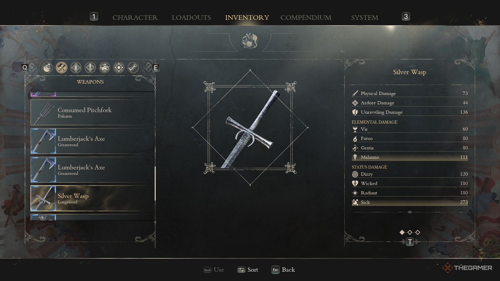 Серебряная оса — идеальный выбор для того, чтобы вызвать болезнь среди ваших противников, поскольку в ранней игре не так много оружия, специализирующегося на уроне Маланно. Вы можете найти его в районе Малой общины Квинты, он спрятан внутри сундука, украшенного цветочными вазами.