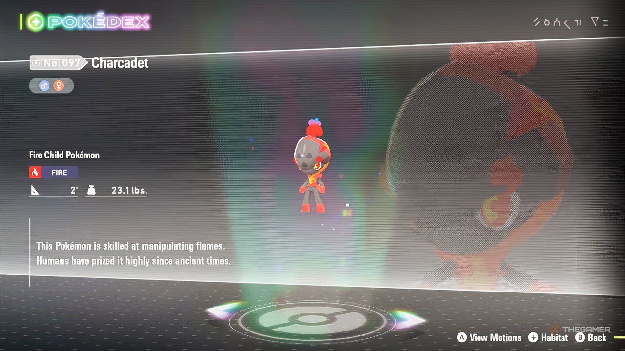 Единственное отличие между обычным Charcadet и его блестящей версией – это цвет его глаз – у блестящего Charcadet пронзительные синие языки пламени вместо красных. После нескольких часов поисков в Pokémon Scarlet & Violet, легко начать видеть синие языки пламени повсюду и сомневаться в том, что вы видите. Это может быть разочаряющая охота! Как только вы наконец-то получите блестящего, все остальное в игре покажется намного проще.