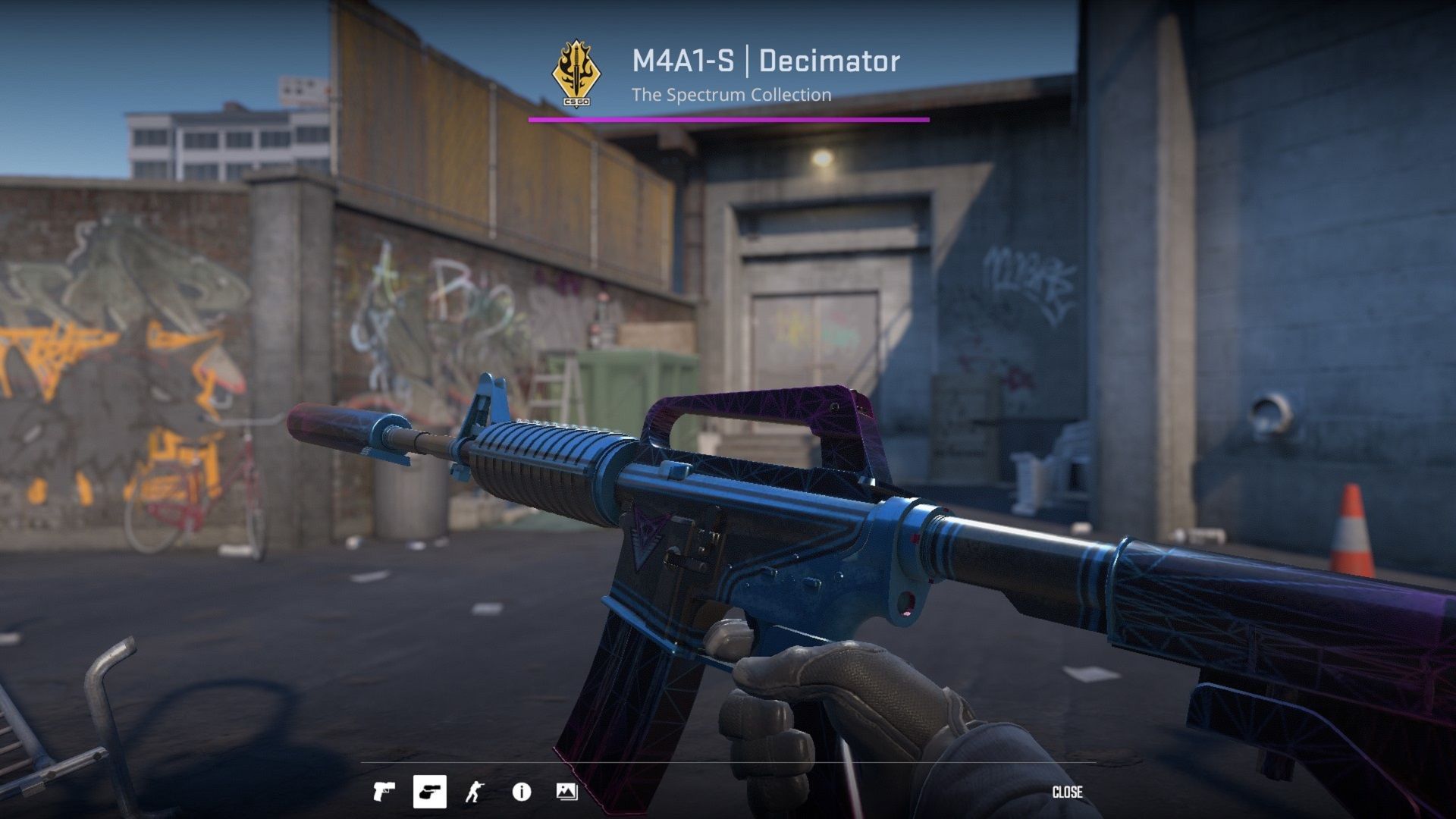С точки зрения дизайна, M4A1-S Decimator замысловат: повсюду разбросаны треугольные мотивы, создающие крутую научно-фантастическую неоновую атмосферу, которая обязательно привлечет ваше внимание. Цветовая гамма скина, представляющая собой гармоничное сочетание фиолетового, синего и черного цветов, делает его привлекательным выбором для Counter-Strike 2.