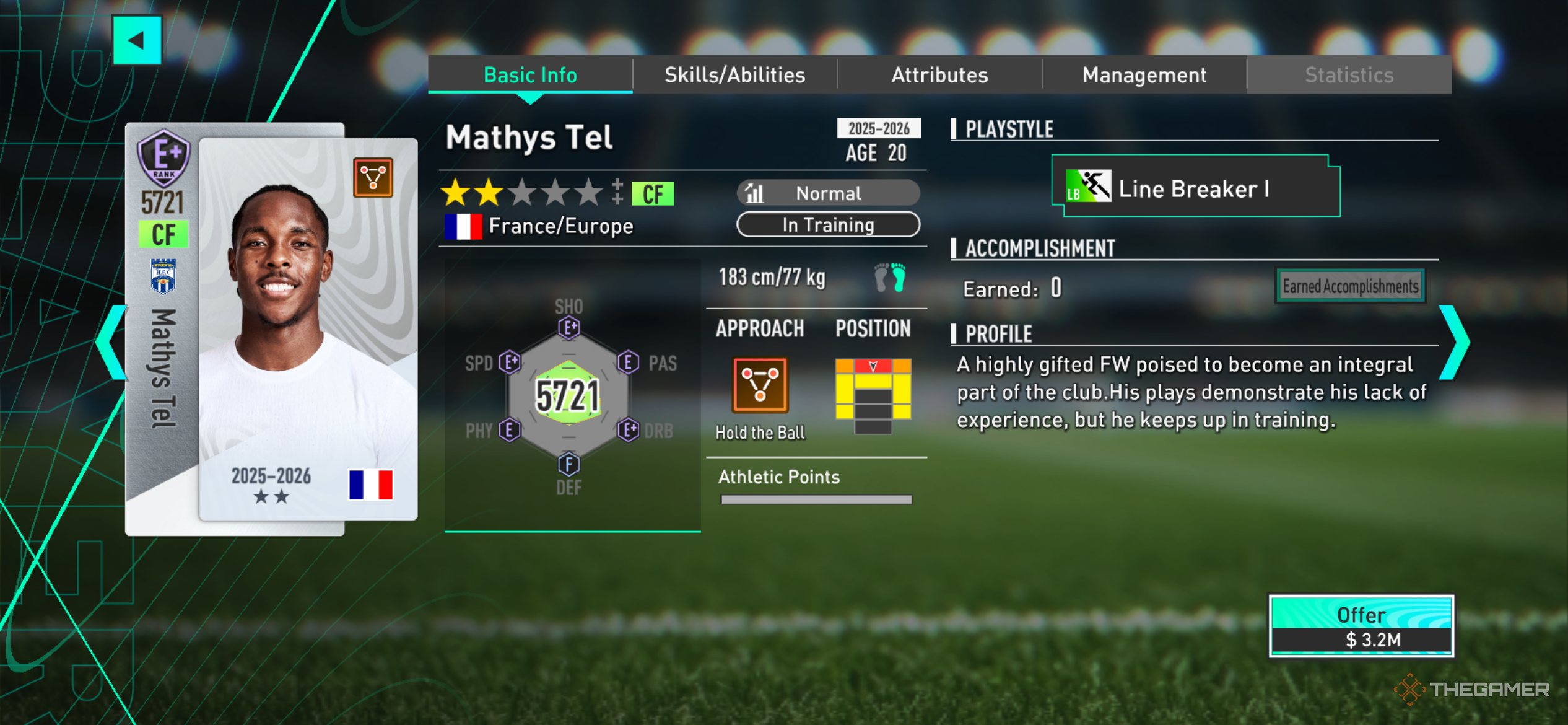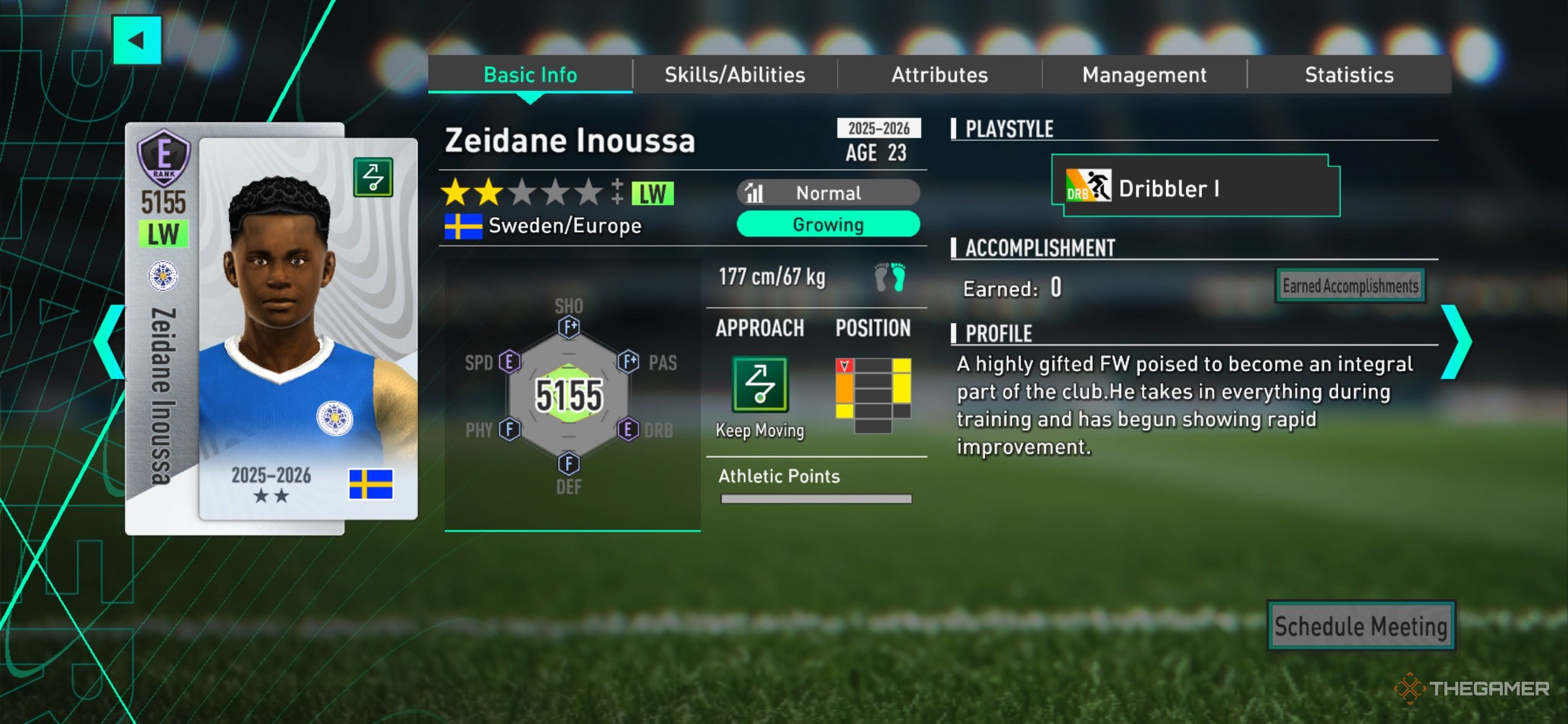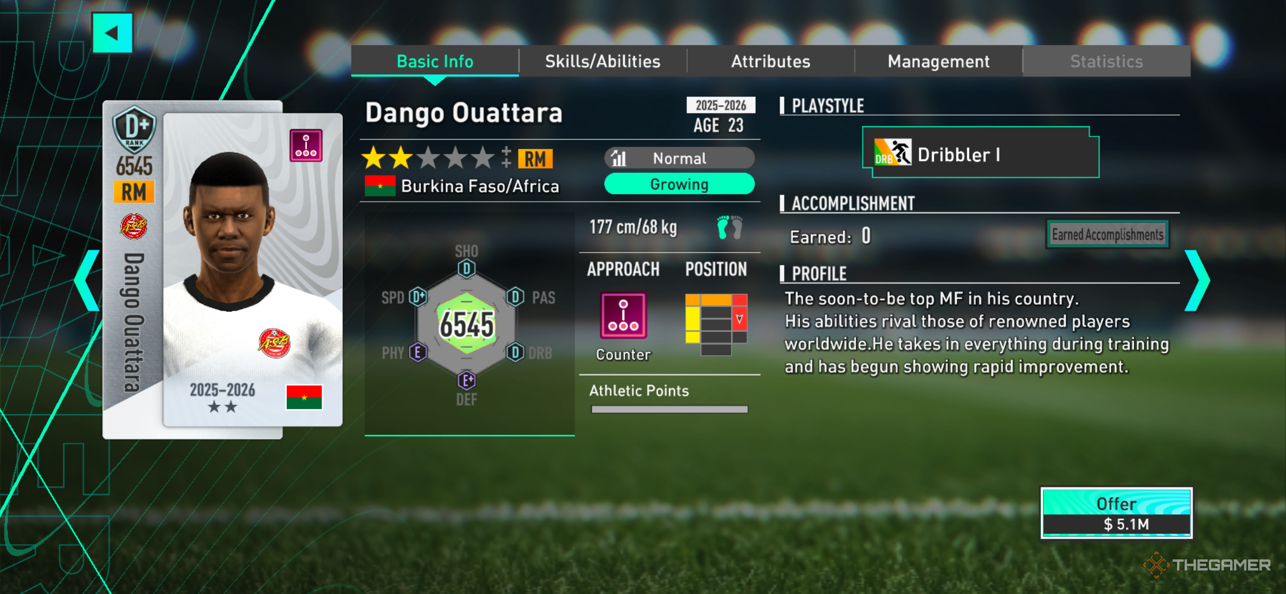 Данго Уттара может и не выделяться по статистике по сравнению с другими игроками, но он быстро развивается и вскоре станет ключевой частью вашей команды. Благодаря его отличному дриблингу и скорости, у него есть потенциал стать одним из лучших игроков из Буркина-Фасо.