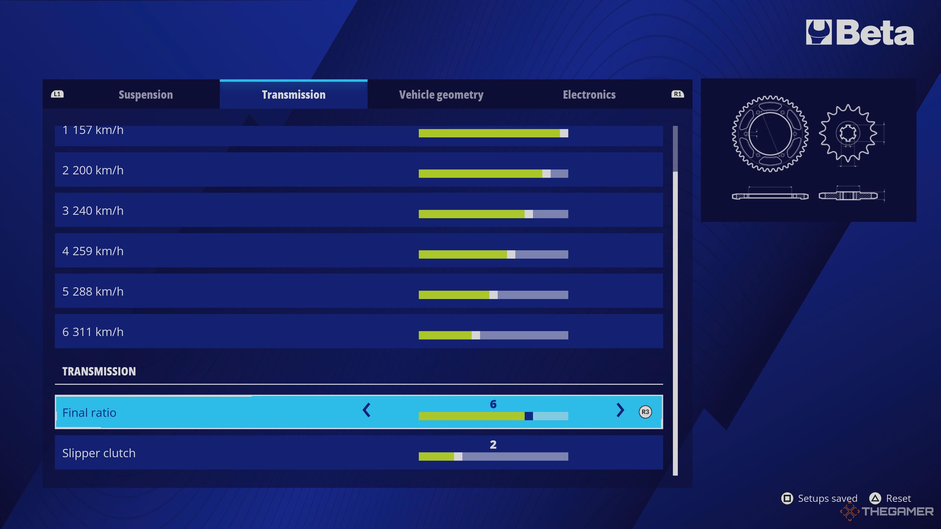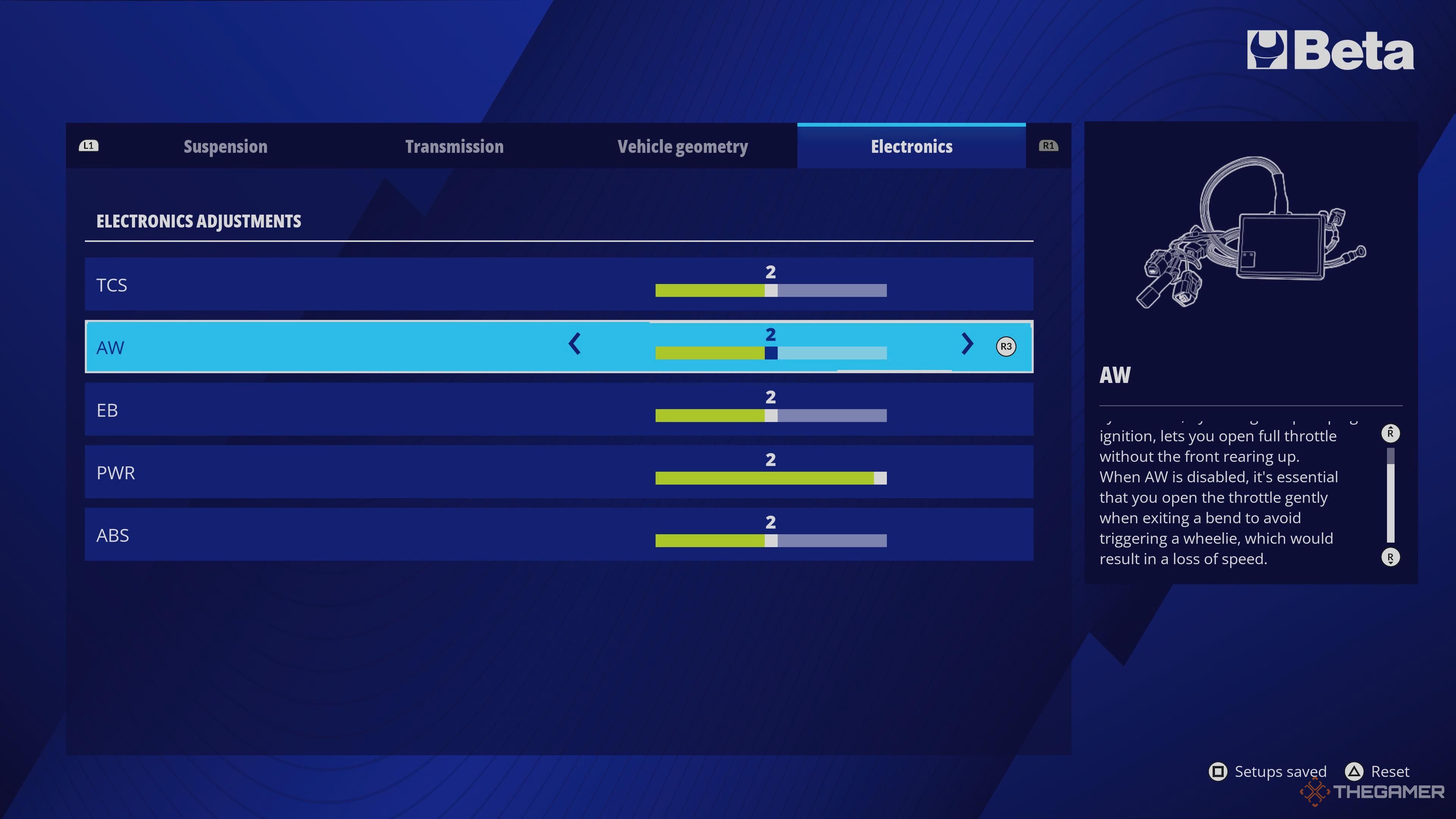 В Ride 6 ваш мотоцикл не должен работать настолько напряженно, поэтому вы можете увеличить мощность и немного уменьшить вес ускорения. Вот наши рекомендуемые настройки: