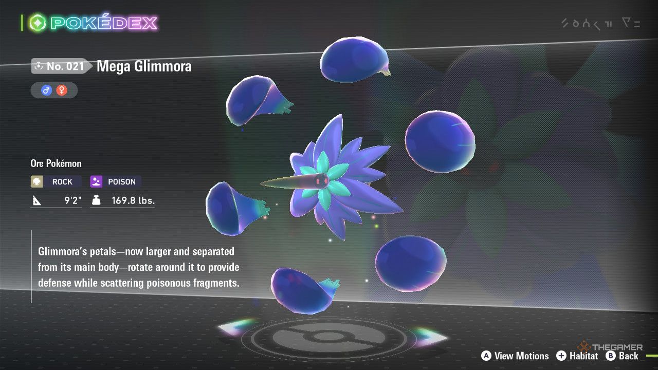 Глиммора, запоминающийся покемон из истории региона Пальдеа, возвращается с мощной Мега Эволюцией. Эта новая форма получает значительное увеличение характеристик, делая её ещё сильнее, чем прежде.