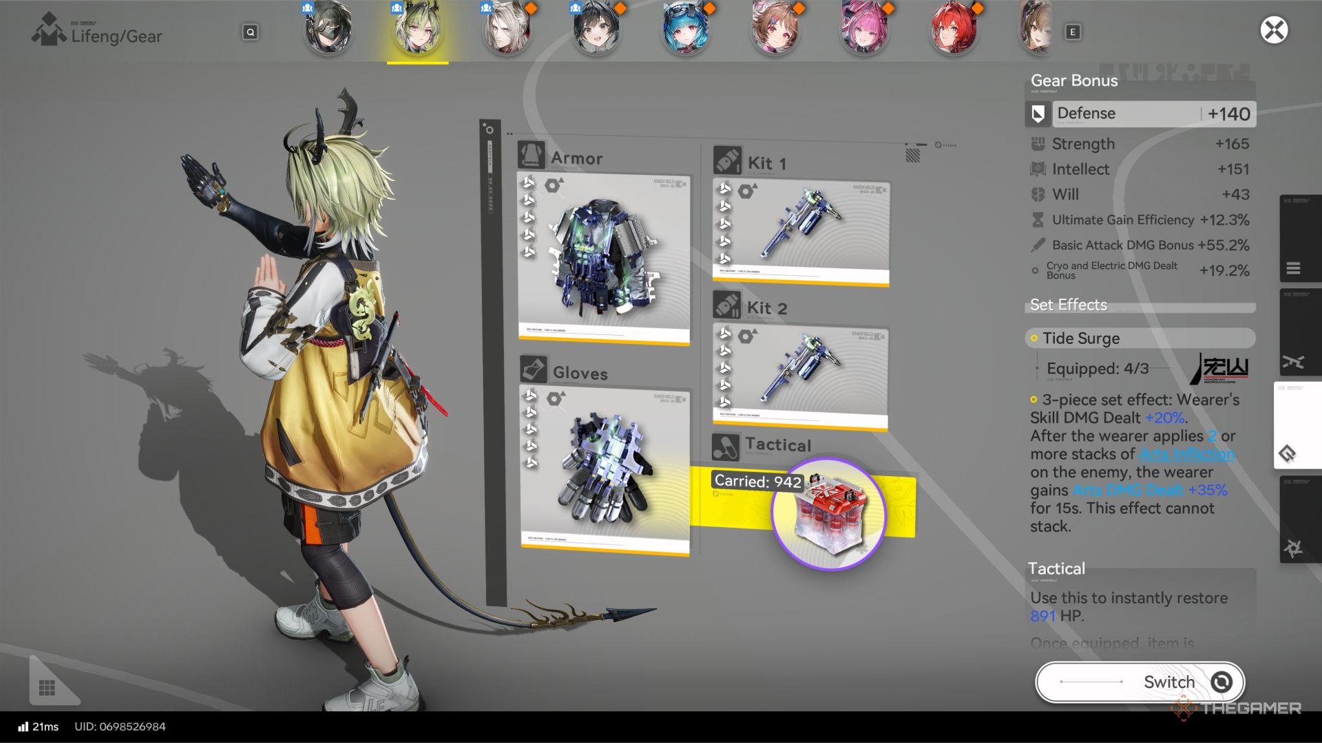 Лифенг выигрывает от нескольких мощных комбинаций экипировки, и мы рекомендуем Аэтертех в качестве лучшего выбора. Он идеально синергирует с его способностями, особенно потому, что даёт ему дополнительные преимущества всякий раз, когда он применяет Уязвимость – что он делает часто, особенно когда он является основным оператором игрока.