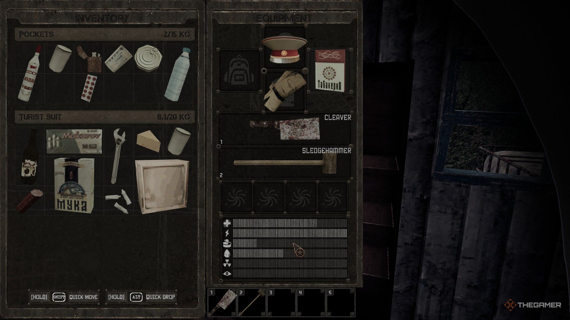 Эти характеристики — самые важные, за которыми нужно следить. Энергия контролирует, как долго вы можете бегать и двигаться. Радиация и Безумие опасны; если они станут слишком высокими, они повредят ваше здоровье или даже мгновенно убьют вас.