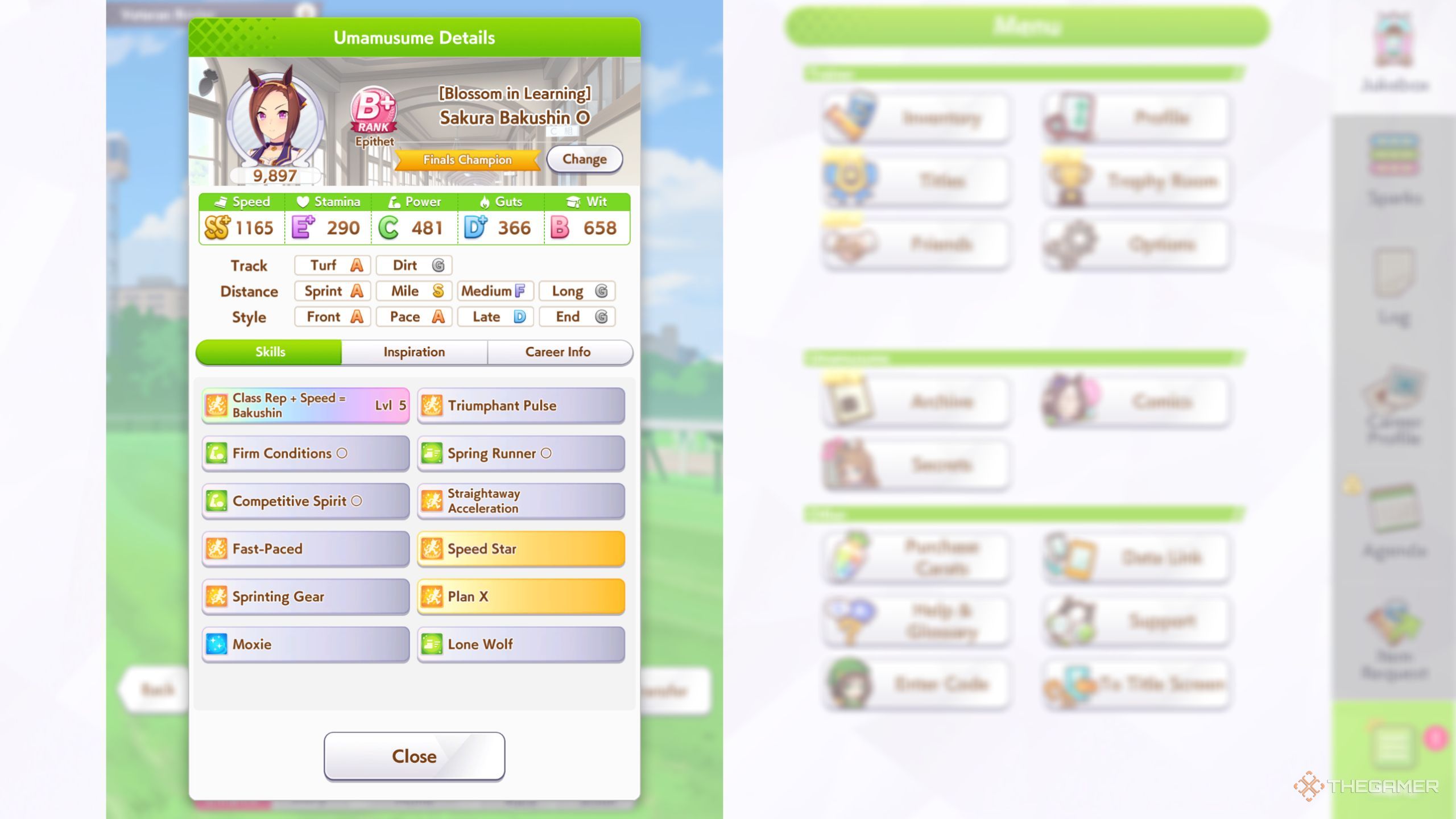 Если у вас хорошая Скорость, вы также можете сосредоточиться на увеличении своей Силы и Ума. С идеальными родительскими Наследиями – в частности, девятизвёздными синими искрами от обоих родителей – вы можете получить до 126 бонусных очков характеристик, когда начнёте свою карьеру. Этого нельзя достичь на ранних этапах, но это значительный прирост, если вы соответствуете требованиям.