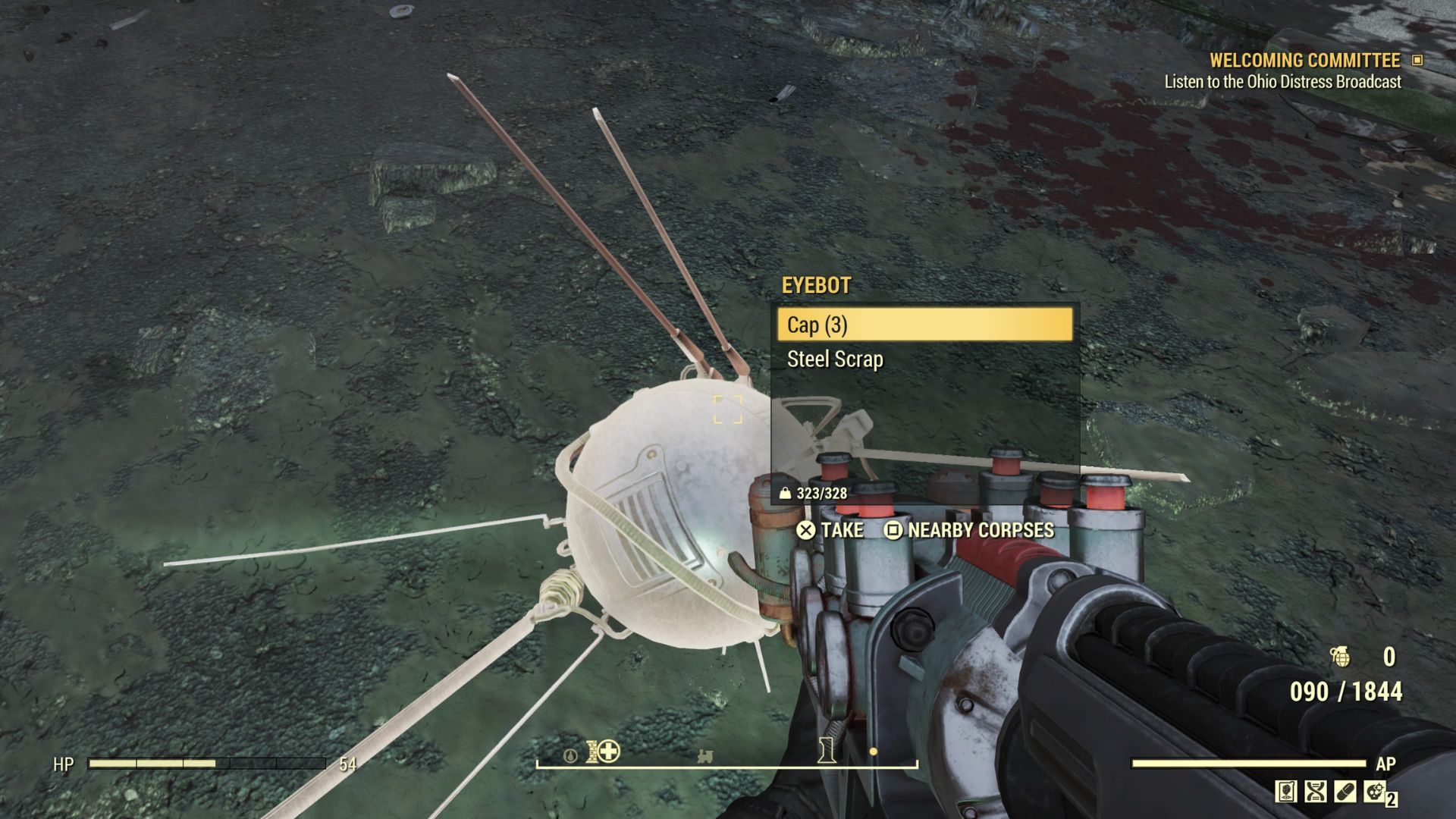 В Fallout 76 вы часто будете видеть Eyebots, бродящих по пустоши. Они часто появляются неожиданно, даже когда вы пытаетесь делать что-то другое – например, когда вы находитесь на железнодорожной станции и продаете предметы за Caps.