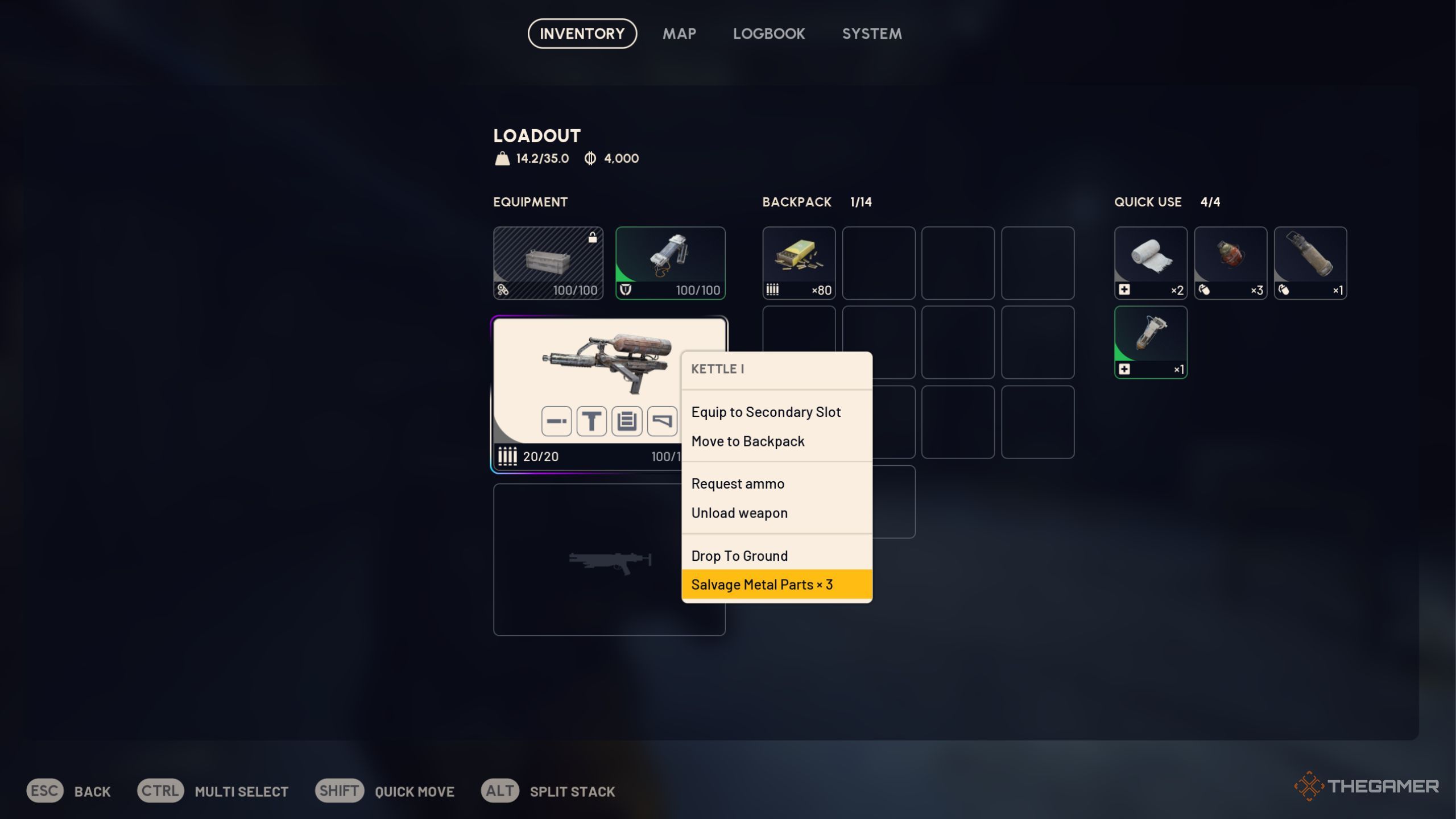 Возможно, у вас не возникнет проблем с инвентарём при обычном сборе предметов, но это часто случается во время рейдов. Рейды дают вам очень ограниченное пространство и грузоподъёмность, особенно когда вы только начинаете. К счастью, вместо того чтобы выбрасывать полезные находки, вы можете разбирать некоторые предметы во время рейда за небольшую плату. Этот процесс называется ‘переработкой’ в меню действий, и вы получите меньше материалов, чем если бы переработали те же предметы обратно на своей базе.