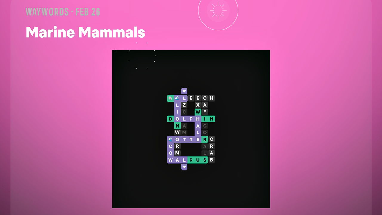 Сегодняшняя головоломка Waywords посвящена ‘Морским млекопитающим’. Найдите скрытый путь в сетке, чтобы раскрыть названия этих животных, которые живут в океане.