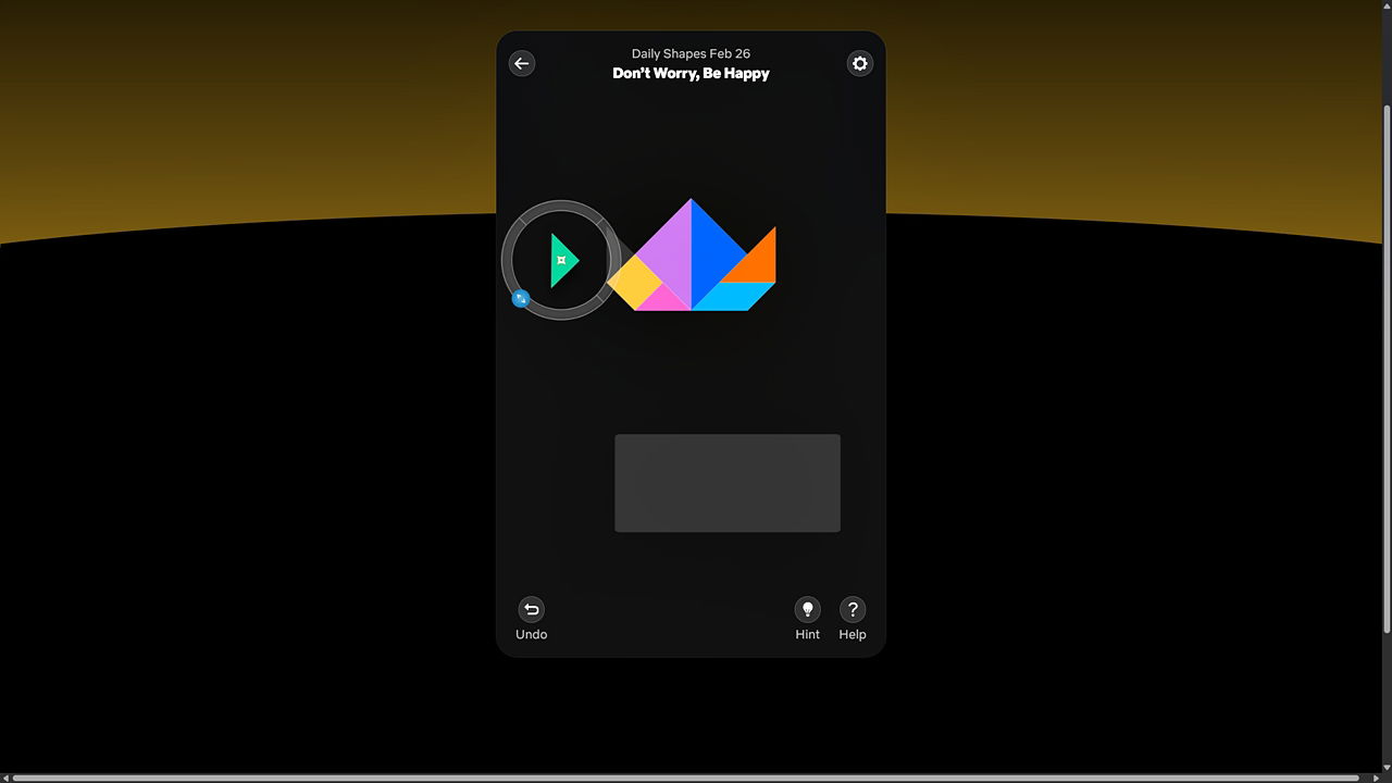Головоломка ‘Don’t Worry, Be Happy’ Shapes предлагает вам создать изображение в форме шляпы, используя детали танграма. Шляпа украшена улыбающимся солнцем, радугой, маяком и синими каплями дождя. Как только вы решите головоломку, будет раскрыт скрытый факт.