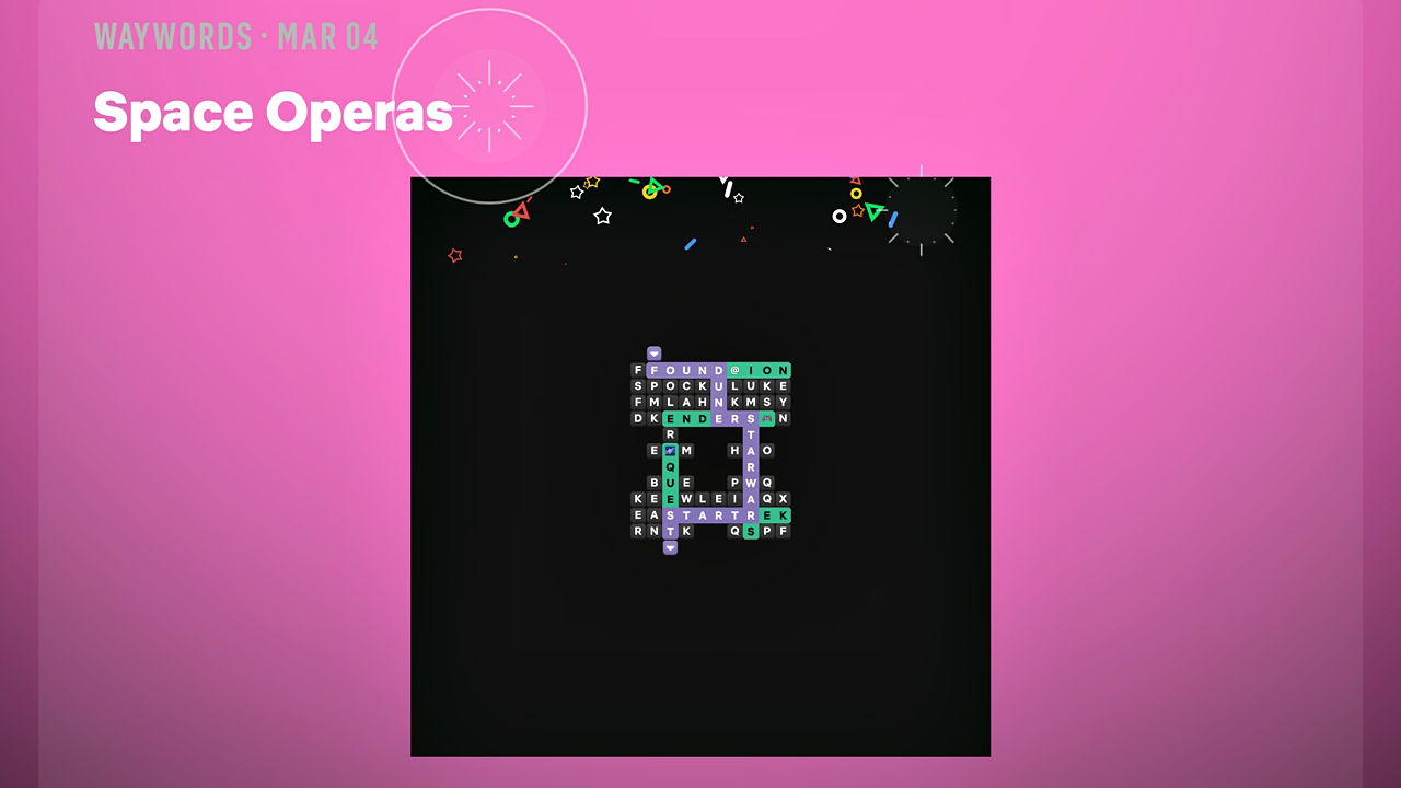 Сегодняшняя подсказка Waywords, ‘Space Operas’, проведет вас по пути классических научно-фантастических историй. Следуйте по буквам сверху вниз на сетке головоломки, чтобы обнаружить: