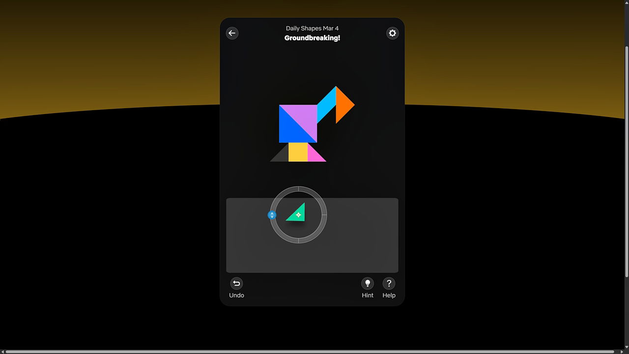 Сегодняшняя головоломка Shapes, под названием «Groundbreaking!», предлагает вам соединить детали танграма, чтобы создать контур экскаватора. Как только вы ее решите, вы увидите эту цитату:
