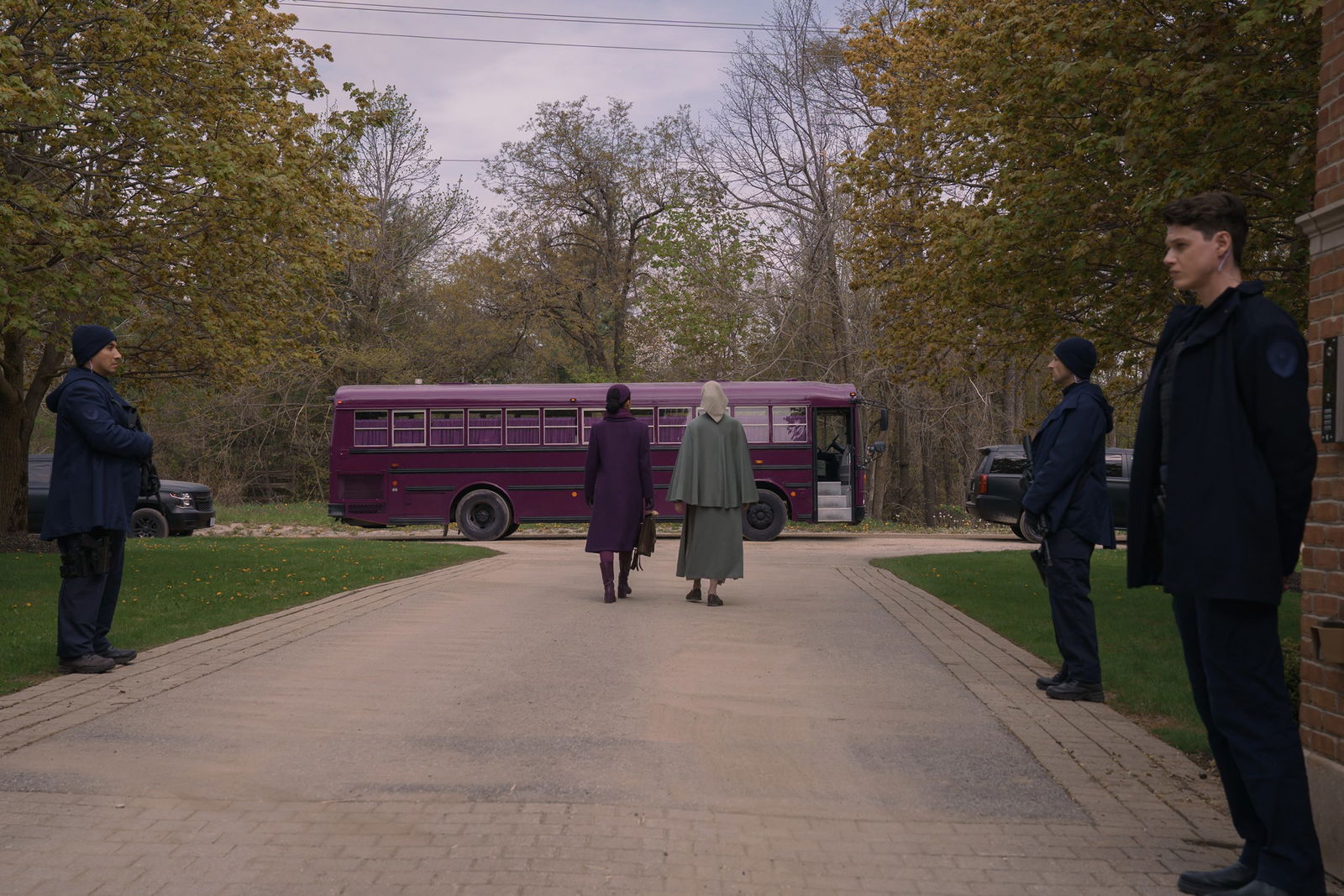 Агнес едет на пурпурном автобусе в школу, в котором есть шторы, чтобы мужчины не могли заглядывать внутрь. Она и её друзья, девочки из Плам, вместе со своей опекуншей, тётей Видалой (Мэйбл Ли). Они становятся свидетелями тревожного зрелища: пятеро мужчин, осуждённых за похищение девочки, повешены на городской площади. Шокирующе, но некоторые из этих мужчин были теми самыми опекунами — солдатами, назначенными для защиты женщин, — которые должны были обеспечивать их безопасность. Агнес также замечает, что один из опекунов смотрит на неё с нежелательным вниманием.