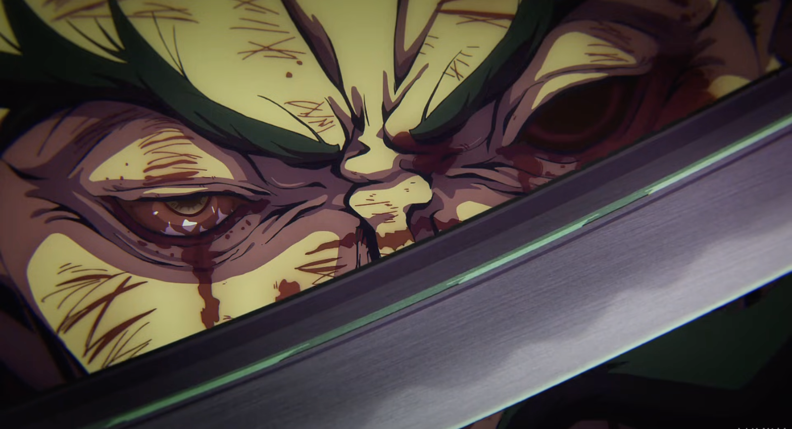 Камера фокусируется на лице Гантетсусая, раскрывая ужасную травму – из одного глаза течёт кровь, а другой полностью удалён. Несмотря на это, он концентрирует свою энергию, чтобы преодолеть ограниченное зрение, и наносит мощную атаку по Тао Фа, демонстрируя, что человеческое мастерство может соперничать даже с божественной силой.