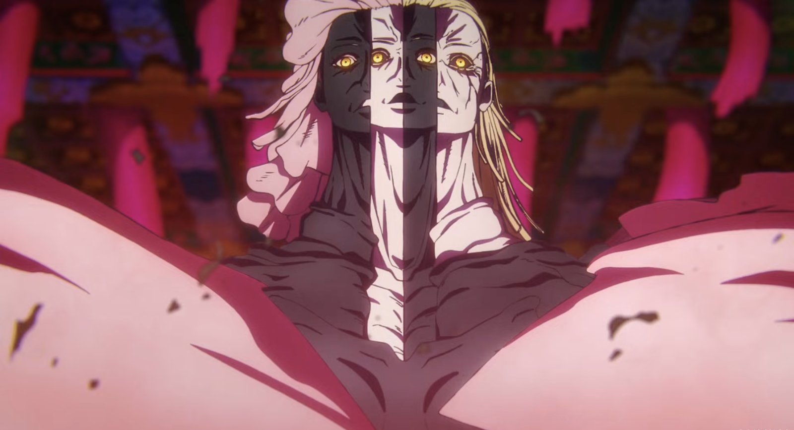 MAPPA анимировал поразительную и странно красивую сцену: персонажи объединяются, чтобы стать одним могущественным существом. Хотя это слияние значительно увеличивает их силу, именно искренние эмоции, которые его движут, действительно делают эпизод впечатляющим.