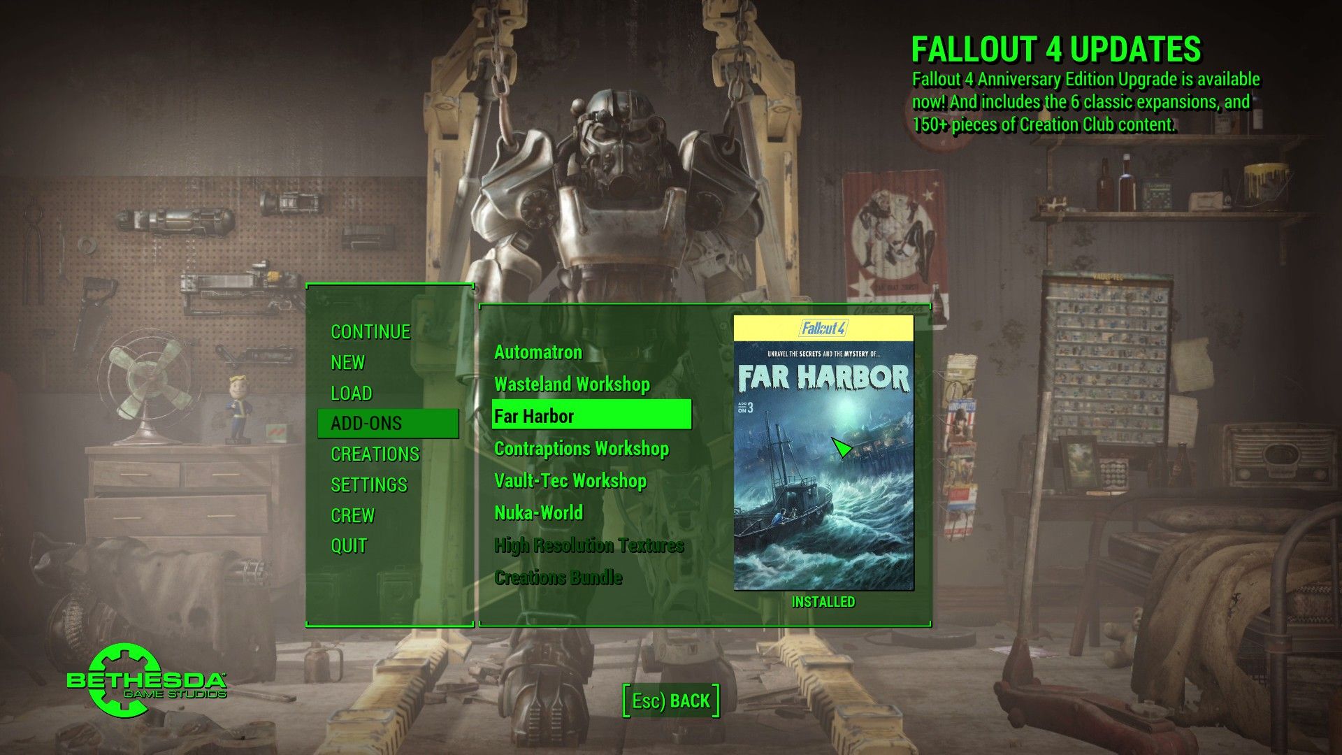 Fallout 4: Anniversary Edition по сути является той же игрой, что и издание Game of the Year 2017 года, с лишь несколькими новыми дополнениями через Creation Club. С тех пор она мало изменилась.