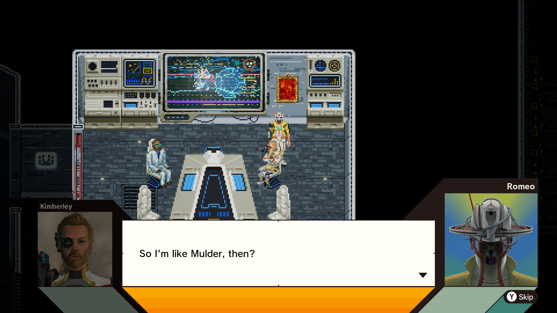 Независимо от того, заканчиваете ли вы главу или возвращаетесь из Space-Time Pharmacy, вы всегда будете возвращаться в Last Night – основную базу игры, которая является космическим кораблём. Last Night имеет очаровательный стиль пиксельной графики и оптимизированную планировку, что облегчает навигацию. Кроме того, именно здесь вы улучшаете своего персонажа и открываете новые способности.