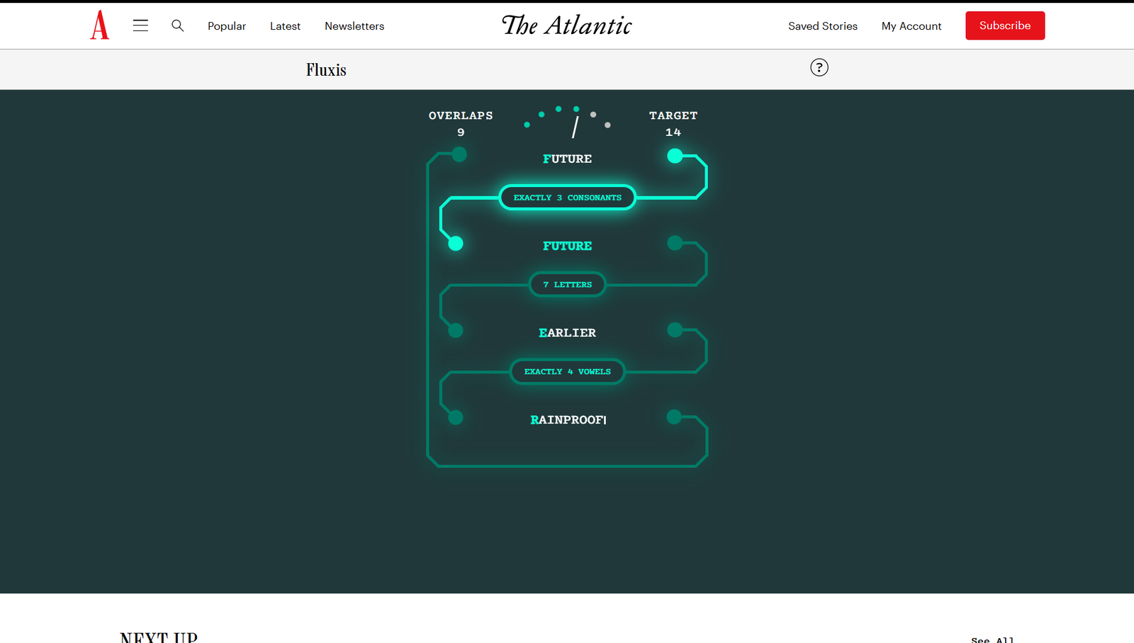 Прочитать отчет 10-KСчастливой пятницы, 13 февраля! Вы достигли конца недели, и новый выпуск The Atlantic Games здесь, чтобы начать ваш день. Не стесняйтесь сразу же приступать к любой головоломке, которая вас интересует, или прокрутите вниз, чтобы получить подсказку, если хотите.