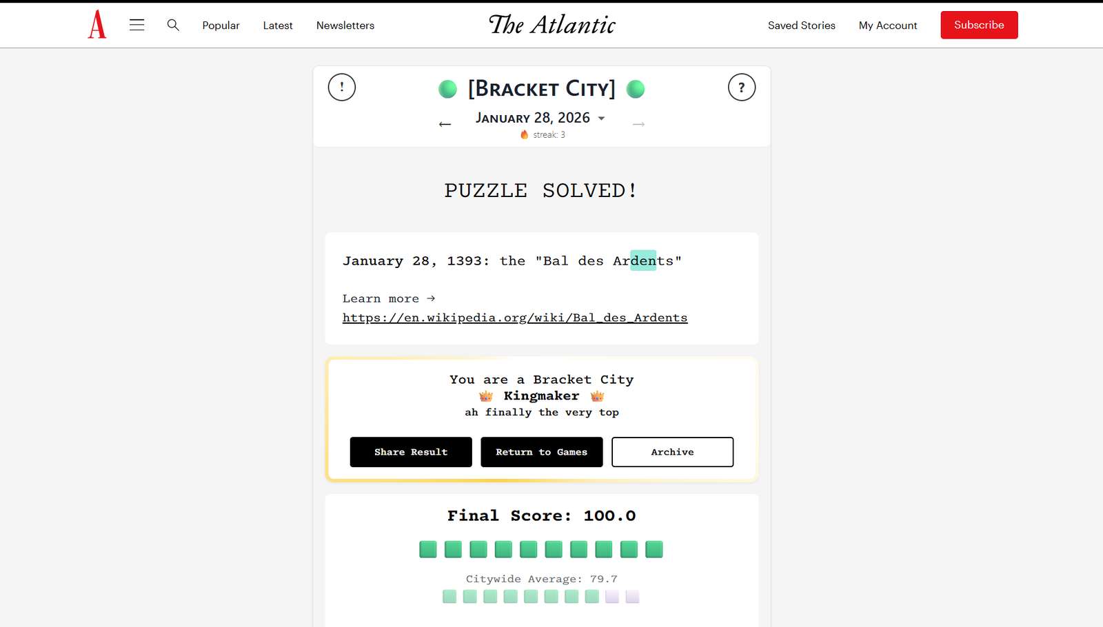 The Atlantic Bracket City Solution для 28 января 2026 года.