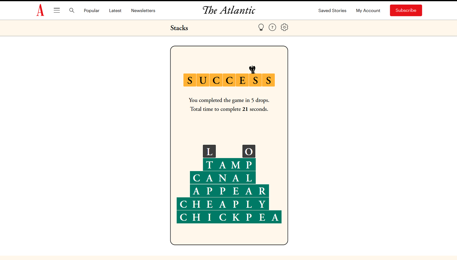 Головоломка The Stacks сегодня — классика: расположите пять слов в ряд, а затем используйте те же буквы, чтобы составить еще пять слов.