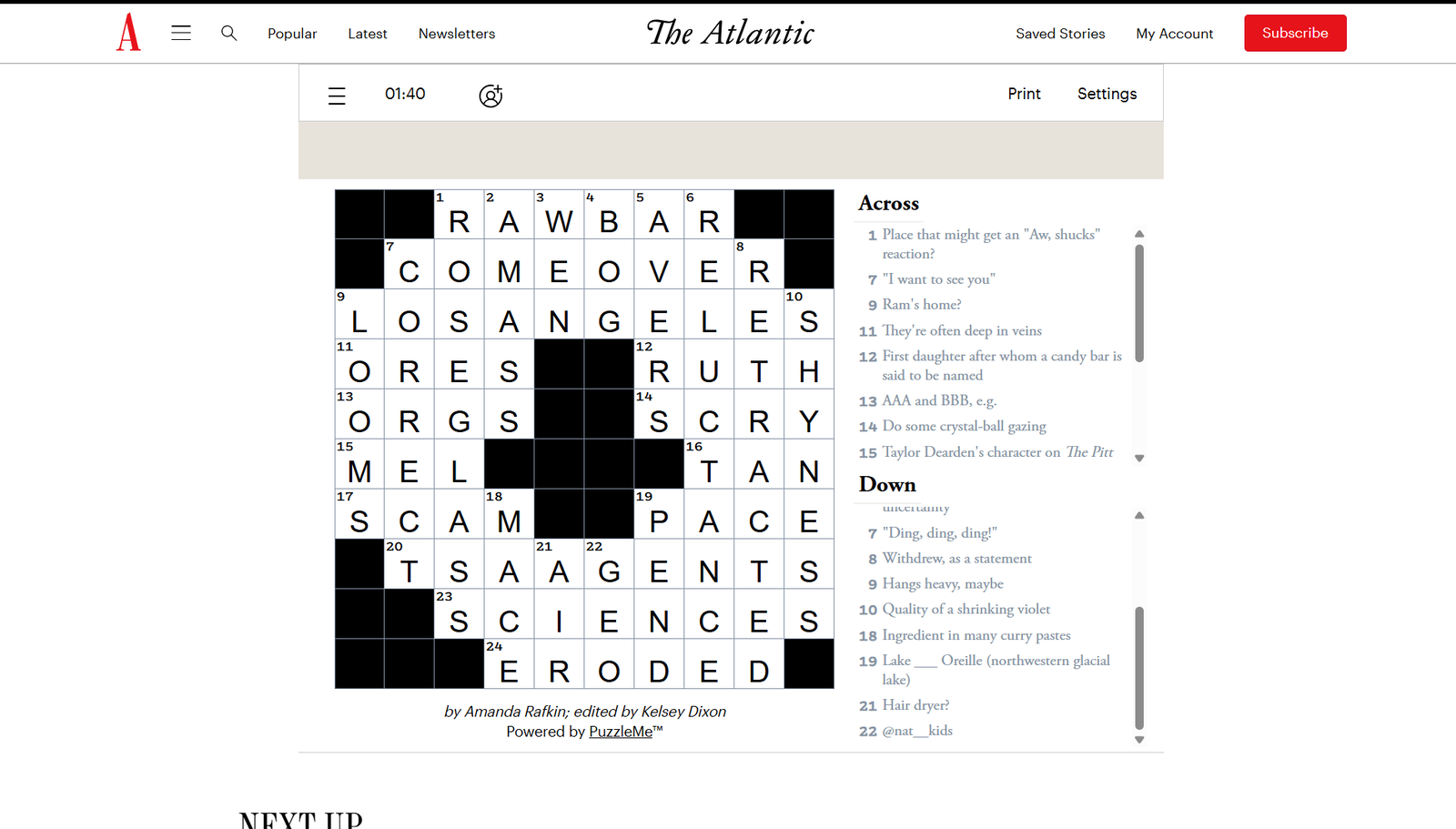 Решение кроссворда The Atlantic за 24 января 2026 года.