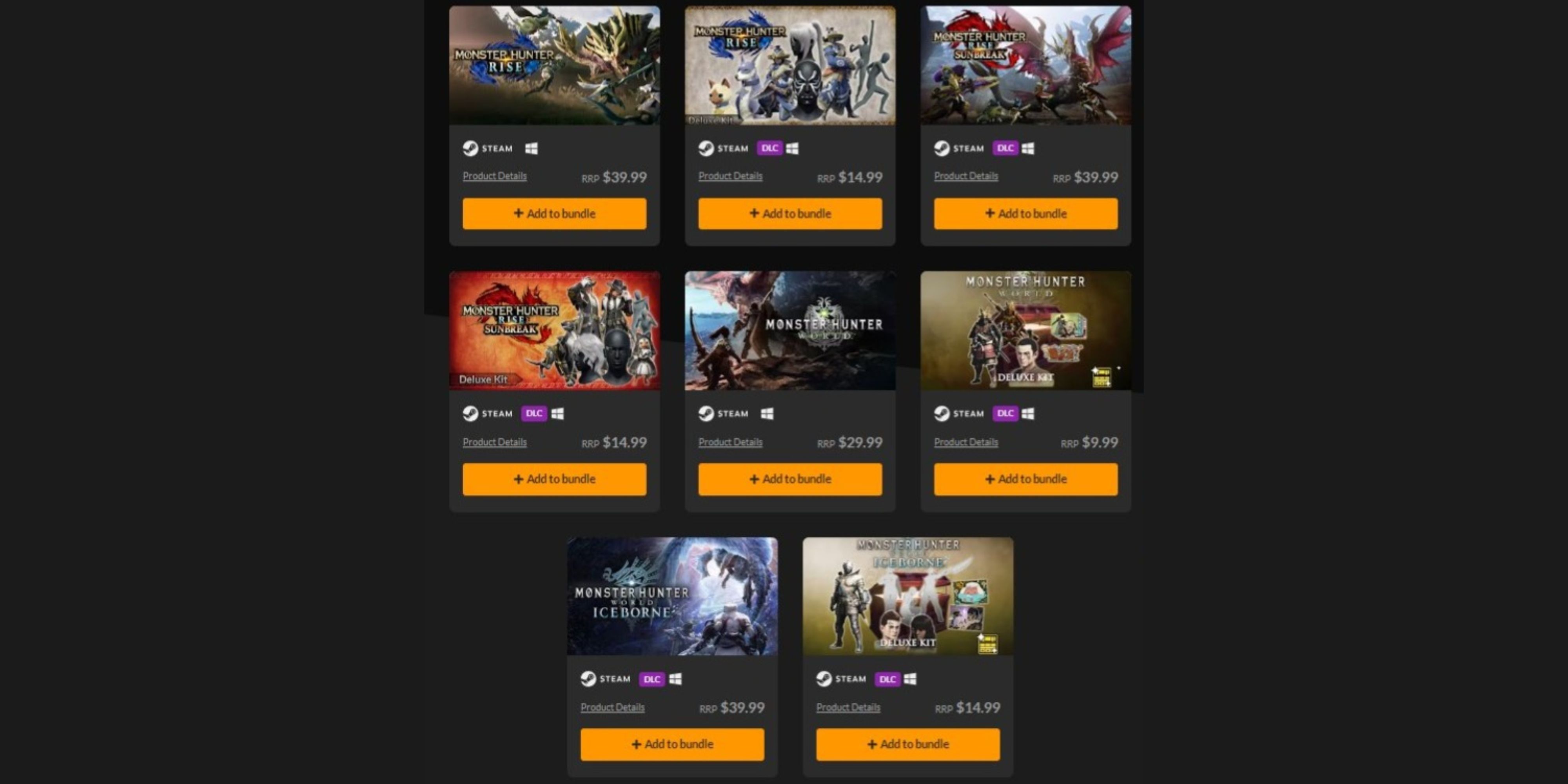 - У Fanatical есть собственный комплект Monster Hunter, в котором вы сможете приобрести некоторые из своих игр и DLC по значительно сниженной цене.