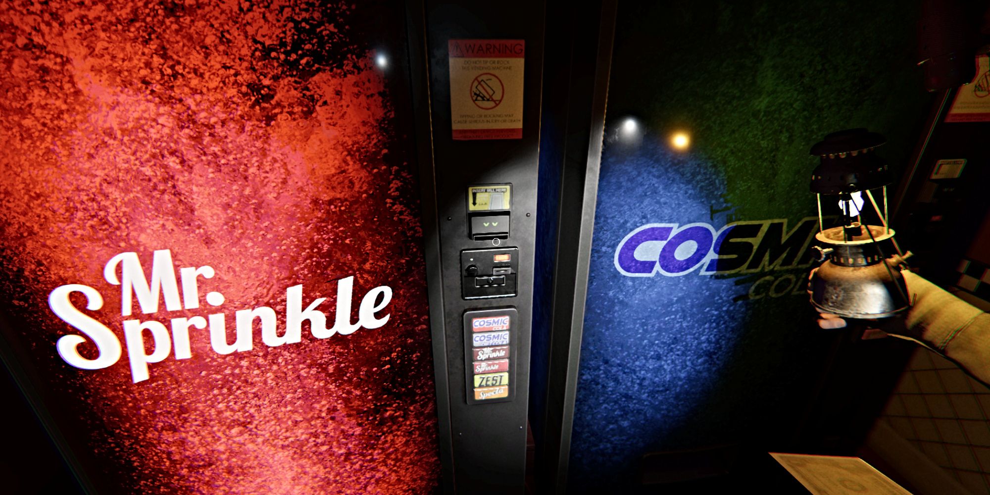 Затем направляйтесь к автоматам с напитками в конце коридора. Положите один доллар в автомат Mr. Sprinkle – подойдет любой из них, но я подтвердил, что красный автомат работает.