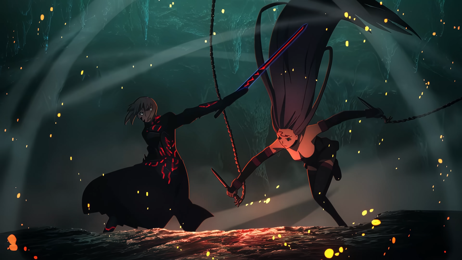Каждый удар в этой битве ощущается мощным и существенным – это далеко не просто типичный звук столкновения мечей. Звуковые эффекты идеально сочетаются с невероятными визуальными эффектами, например, когда Excalibur Saber Alter посылает волны темной энергии, которые разрушают замок вокруг них. Кроме того, в анимации используются действительно энергичные и захватывающие движения камеры.
