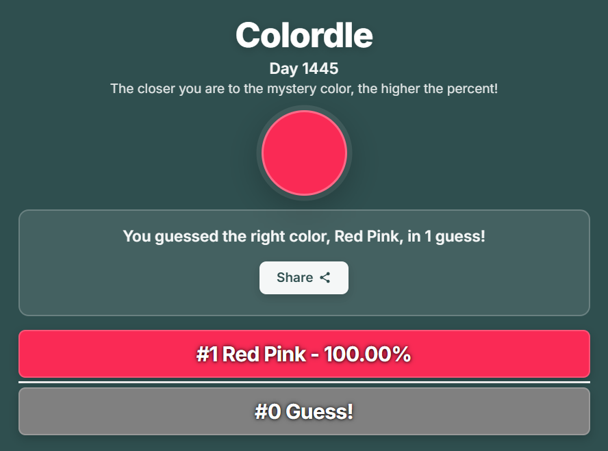 Доступна новая головоломка Colordle, чтобы проверить ваши знания цветов! Мы дадим вам подсказки, чтобы помочь угадать секретный цвет и сделать каждую попытку важной.