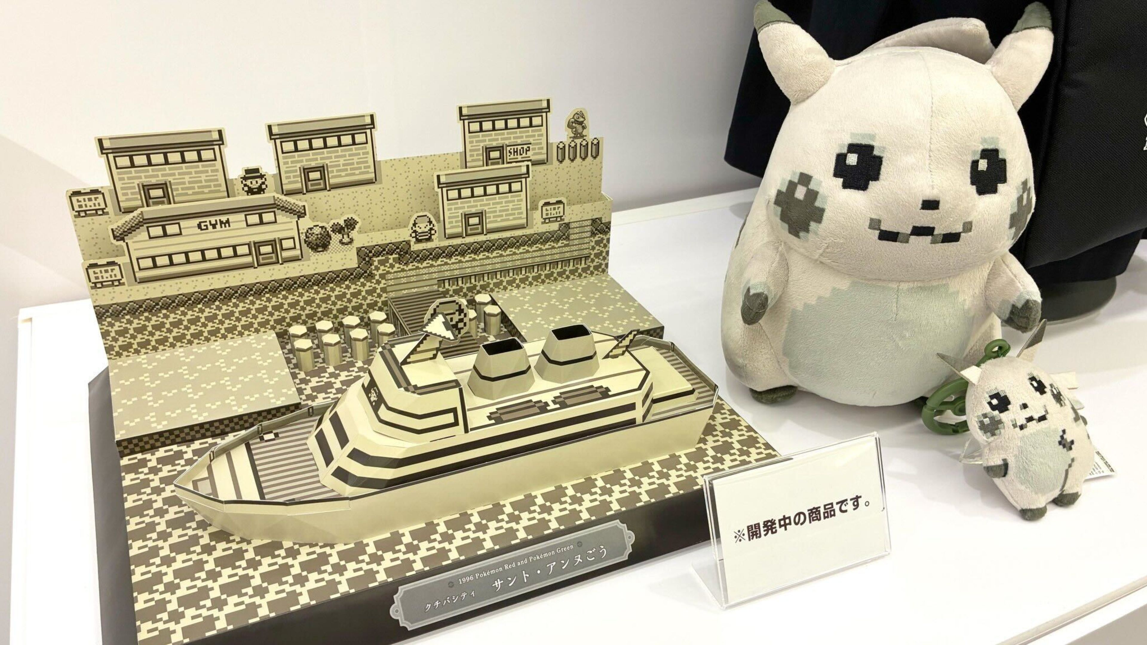 Если у вас уже достаточно плюшевых Пикачу, вас может больше заинтересовать гладкий аксессуар в чёрно-белой гамме, показанный вместе с ним. Это детализированная диорама S.S. Anne, знаменитого корабля из оригинальных игр Pokémon, тщательно воссозданная так, как она выглядела три десятилетия назад. В диораме даже есть часть города Vermilion City, включая зал, где вы получили значок Thunder Badge!