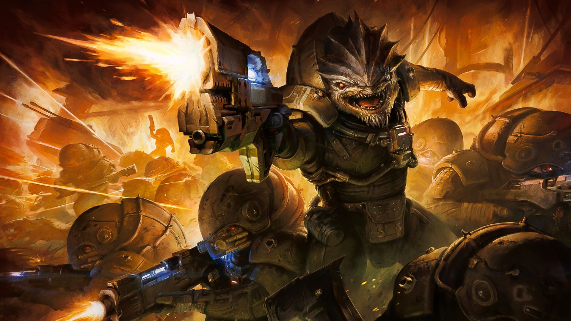 Переходя к более практичным идеям, команда Mass Effect заметила кое-что интересное: многие из концепт-артов, выпущенных на данный момент, изображают персонажей в дыхательных масках или других устройствах, включая иллюстрации, изображающие новый конфликт Кроганов.