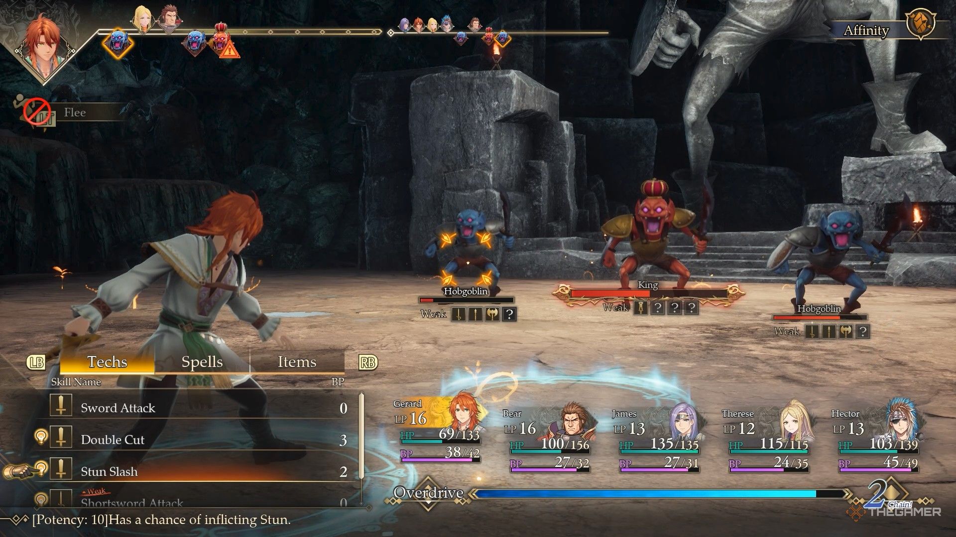 В этой обновленной версии вневременной JRPG боевая система, напоминающая игры 90-х годов этого жанра, модернизирована, предлагая мне и моей группе из трех закаленных в боях товарищей бесшовную трехмерную среду, когда мы начинаем наше первое наступление на злоумышленников. В число моих товарищей по команде входили Медведь, стойкий рыцарь с палашом, и Джеймс, продемонстрировавший невероятную ловкость в обращении с копьями. В игре представлены различные типы «физического урона», поэтому крайне важно учитывать, как каждый тип оружия влияет на наших противников, а также каждое заклинание в нашем инвентаре. У каждого врага, с которым мы столкнулись, были уязвимые места, которые нам нужно было обнаружить, опробовав разные стили атаки, надеясь найти тот, который нанесет максимальный урон. Эта информация затем отображалась под полосой их здоровья, гарантируя, что я всегда знаю, какой прием использовать.