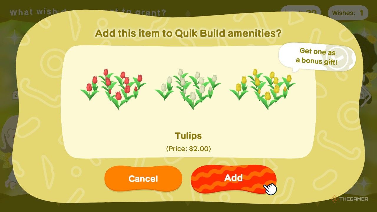 Quik Build не начинается со множества опций, но вы скоро заработаете новые украшения по мере повышения уровня своего острова. Они часто получаются в качестве наград от Wishing Fountain и могут быть приобретены за Warm Fuzzies. Вы первоначально получите одну бесплатную копию каждого нового предмета, но если вам нужно больше, или разные цвета, вам нужно будет купить их напрямую в Quik Build.